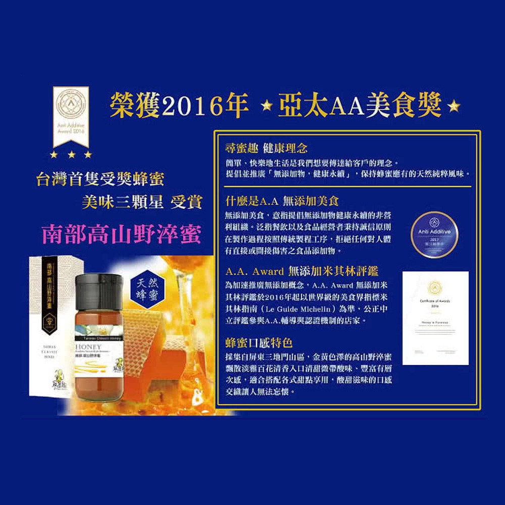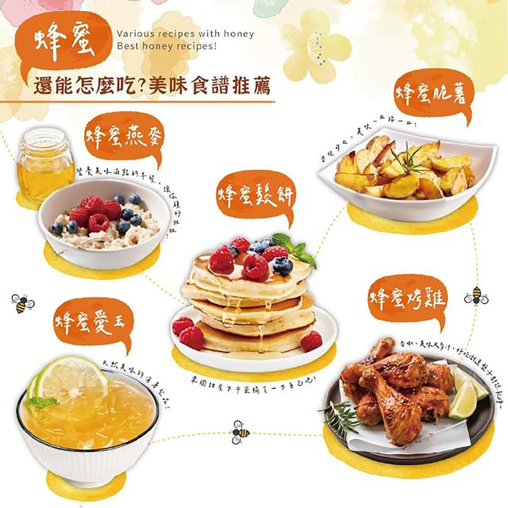 - 享受台灣南部高山野淬蜂蜜,口感輕甜,香氣淡雅,適合搭配各式甜點與飲品,增添風味層次。