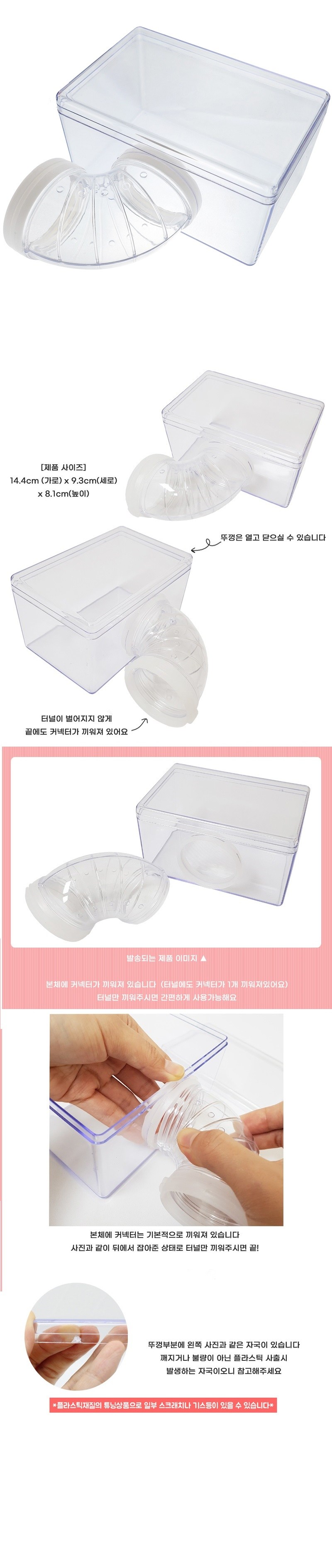 這款Dochiqueen小倉鼠廁所藏身處,採用透明材質設計,方便主人隨時觀察倉鼠的如廁情況與健康狀態。寬敞的空間設計,讓倉鼠可以舒適地在此如廁與休息,減輕牠們的壓力。此外,產品還具有可連接隧道的設計,能夠擴展倉鼠的活動範圍,增加牠們的生活樂趣。蓋子可以打開和關閉,方便清潔和更換墊料。主體上預設裝有連接器,只需連接隧道即可方便使用。