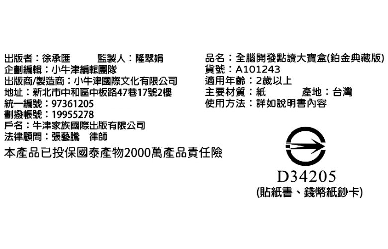小牛津全腦開發點讀大寶盒鉑金典藏版,是專為2歲以上孩童設計的數位學習工具。這套48件組的點讀筆套裝,內含64G奶茶牛點讀筆,提供中英台日客五種語言學習,涵蓋數學、理財、國學、繪本故事、品德教育等多方面內容。透過點讀互動,激發孩子全腦開發,培養多元智能。搭配趣味遊戲貼紙書和啟蒙遊戲錢幣,讓孩子在遊戲中快樂學習,輕鬆掌握知識。此外,音樂充電筆座不僅方便充電,還能播放320首精選曲目,隨時隨地享受音樂的樂趣。