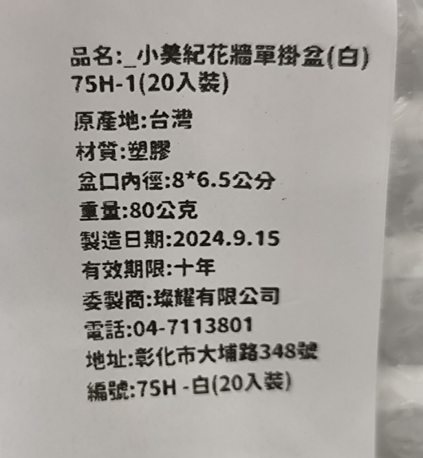 小美紀花牆單掛盆,為您的垂直花園帶來簡約美感。這款白色花盆尺寸為8 x 6.5公分,一組包含20個,適合打造獨特的綠意牆面。採用耐用塑料製成,輕巧且易於安裝,讓您輕鬆創造屬於自己的花園角落。無論是陽台、庭院或室內空間,都能增添清新自然的氛圍。台灣製造,品質保證,為您的植物提供一個安全舒適的家。
