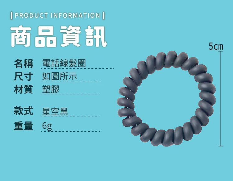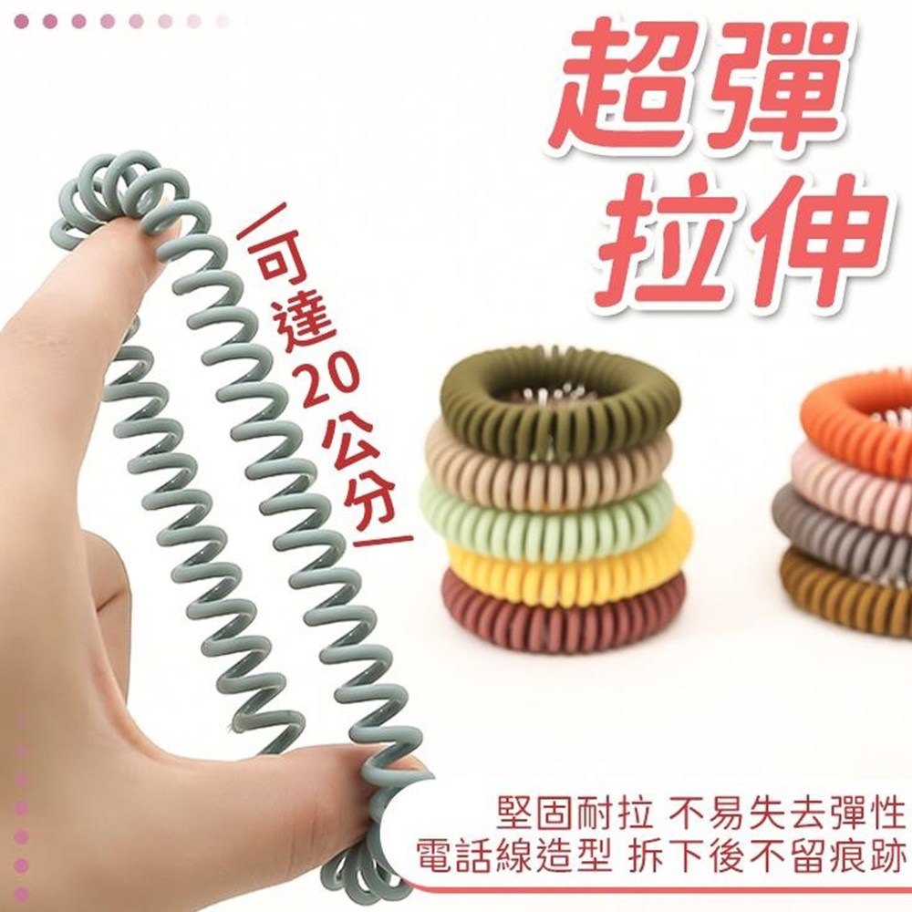- 電話線髮圈彈性佳,不易斷裂,輕鬆固定髮型,展現自然蓬鬆感。