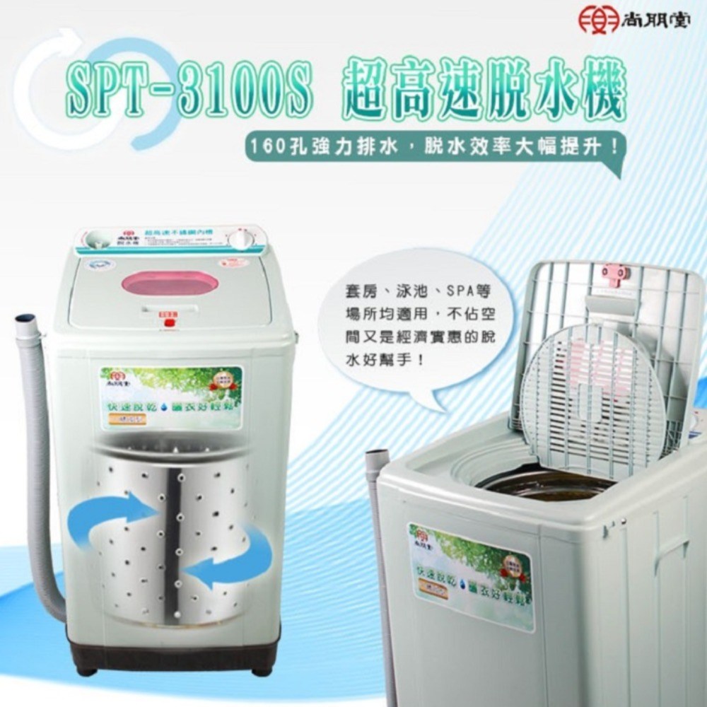 尚朋堂不鏽鋼內槽高速脫水機SPT-3100S,採用超高速脫水技術,能迅速將衣物脫乾,節省您的寶貴時間。其不鏽鋼內槽設計,堅固耐用且衛生,讓您使用更安心。此外,本產品體積輕巧,不佔空間,非常適合小家庭或單身貴族。160孔強力排水設計,有效提升脫水效率,讓衣物更快乾。台灣製造,是您快速乾衣的好幫手。