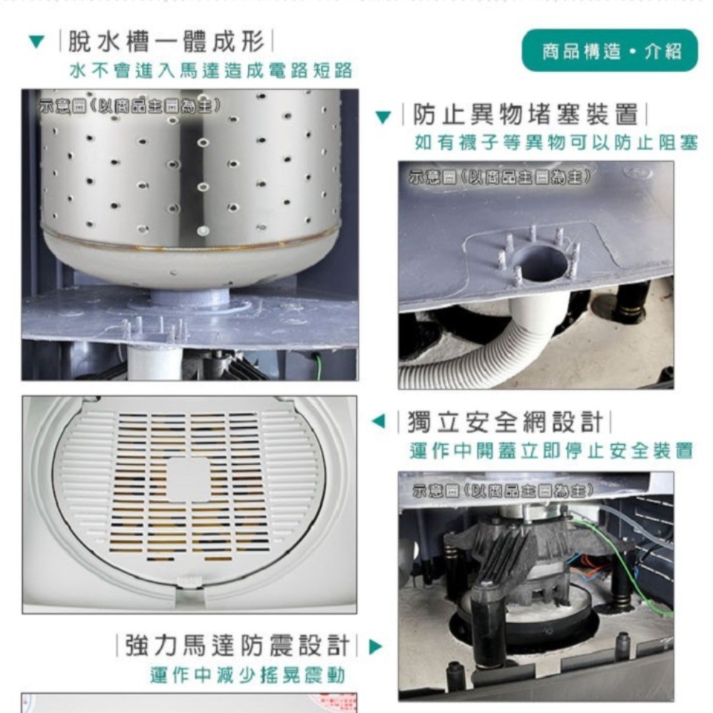 - 高速脫水設計,能快速去除衣物多餘水分,大幅縮短晾曬時間,讓您更快穿上乾淨衣物。