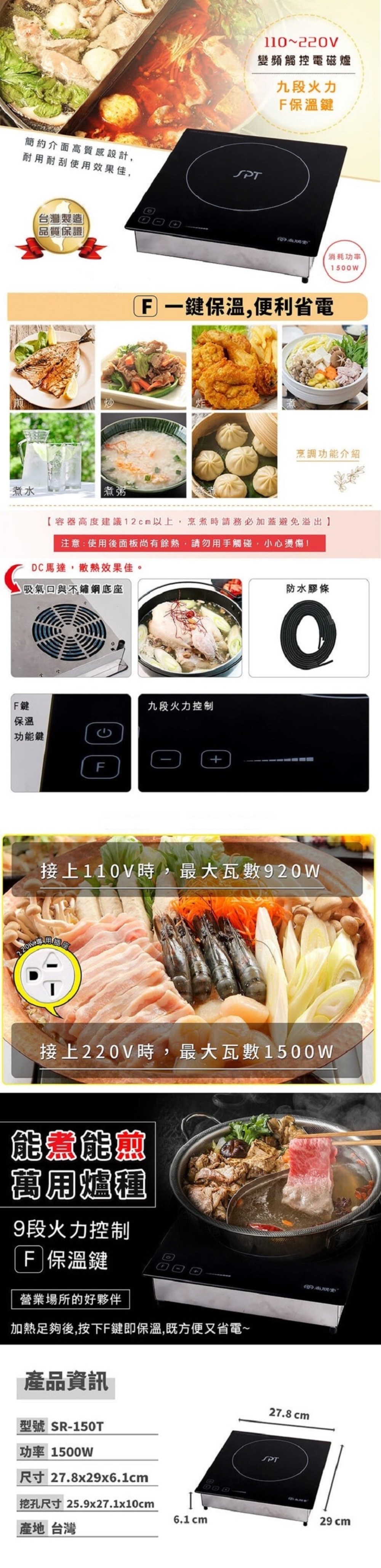 - 台灣製造的尚朋堂電磁爐,品質有保障,操作介面簡約直觀,讓烹飪過程更加得心應手。