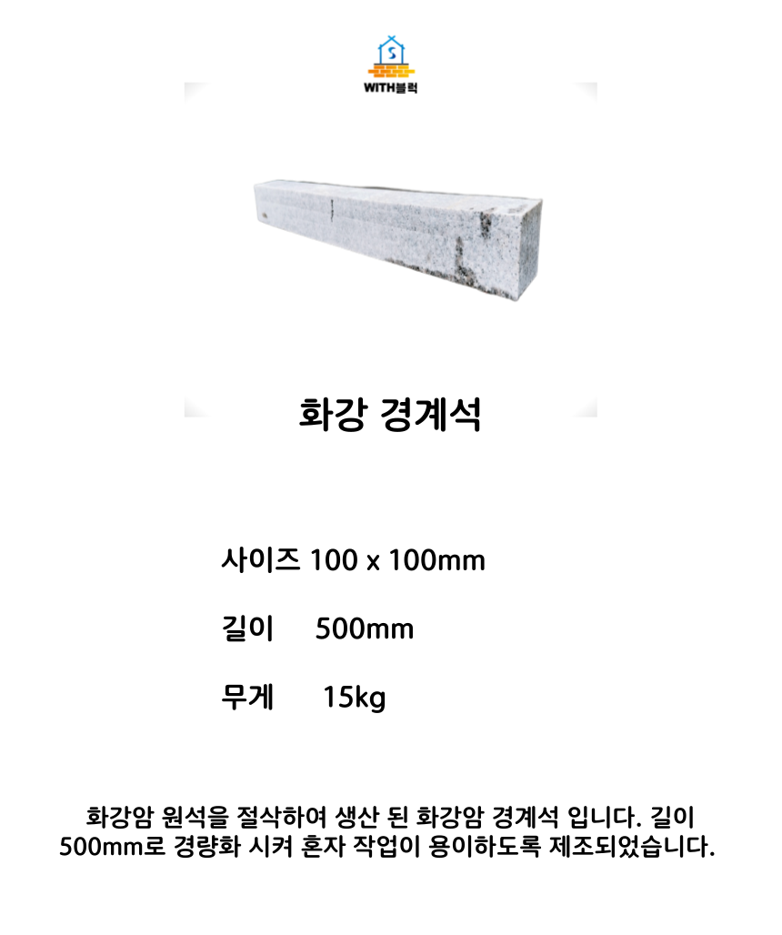 這款花崗岩界石採用切割花崗岩原石製成,尺寸為100 x 100mm,長度500mm,重量約15kg,方便單人操作。白色外觀簡潔大方,易於搭配各種戶外景觀設計。可用於庭院、步道等,界定空間,提升整體美觀性。花崗岩材質堅固耐用,能經受戶外環境的考驗,是您打造優質戶外空間的理想選擇。