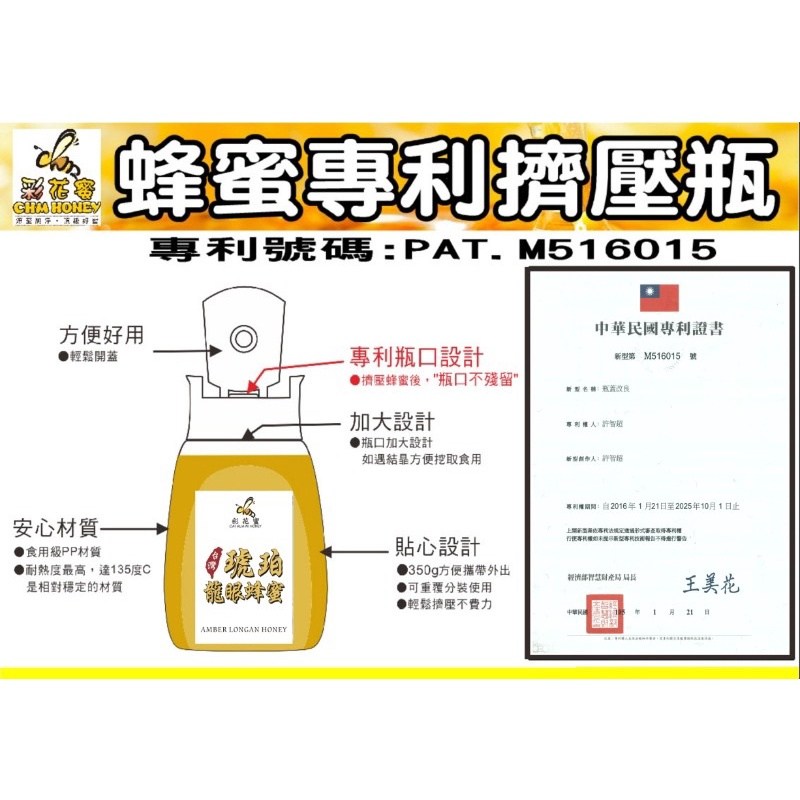 - - 方便擠壓瓶設計,輕鬆控制用量,讓您隨時享受蜂蜜的美味。