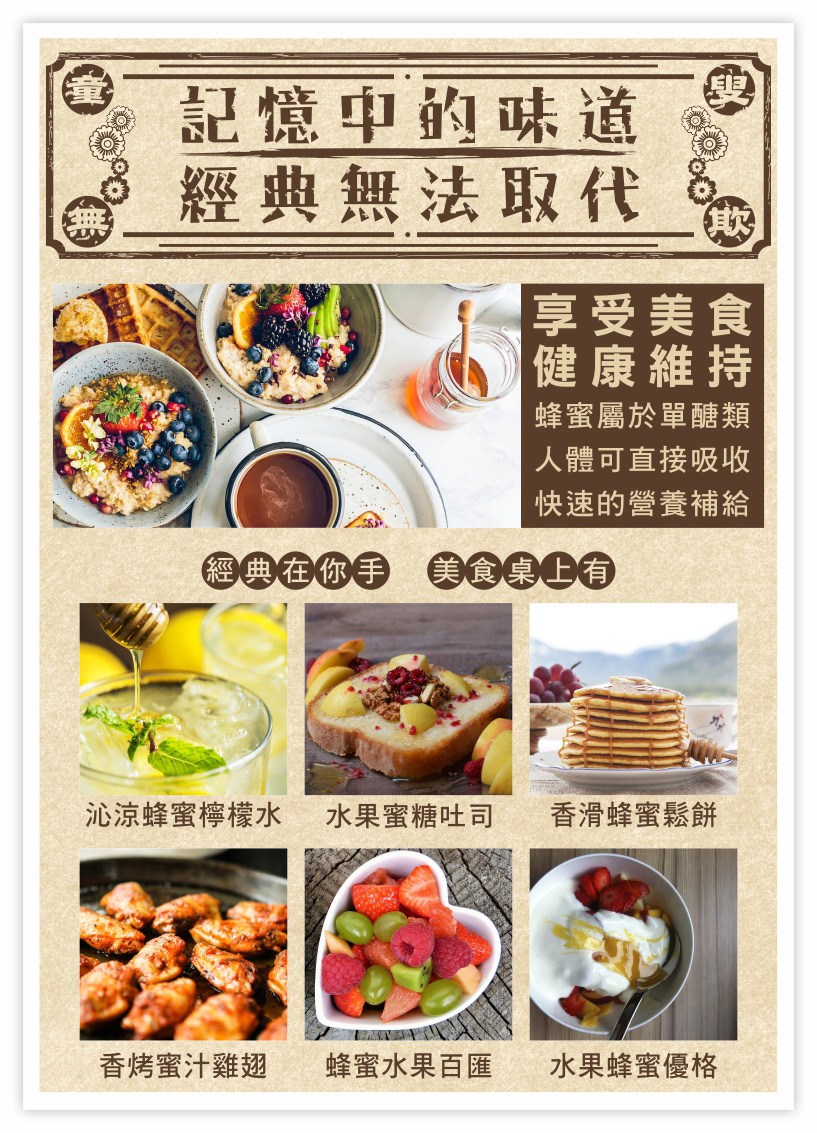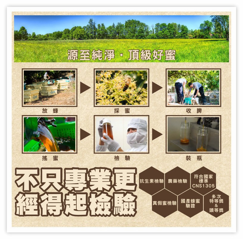 - 玻璃瓶裝設計,方便保存及使用,讓您隨時隨地都能品嚐到美味的台灣龍眼蜂蜜。