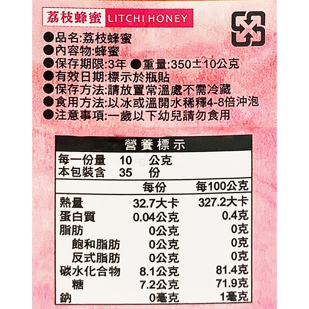 - 台灣荔枝花蜜,香氣濃郁,口感滑順,每一口都充滿陽光滋味,帶來幸福感受。