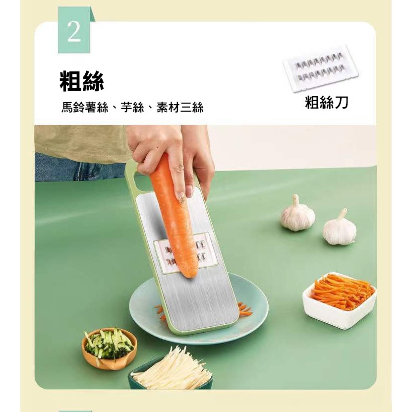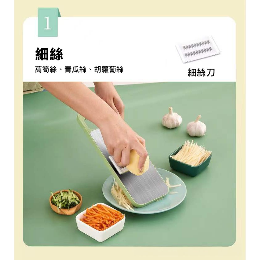 德利生活可切換刀片刨絲器,讓您輕鬆成為廚房料理達人!這款多功能刨絲器配備五種不同刀頭,無論是細絲、粗絲、切花、切片還是磨蓉,都能輕鬆應對,滿足您多樣化的料理需求。刀片採用鋒利耐用的不鏽鋼材質,切菜快速又均勻,搭配安全護手器,讓您使用更安心。產品尺寸為29*10*2公分,輕巧不佔空間,方便收納。建議手洗,保持刀具鋒利度,讓您的廚房生活更加輕鬆便利!