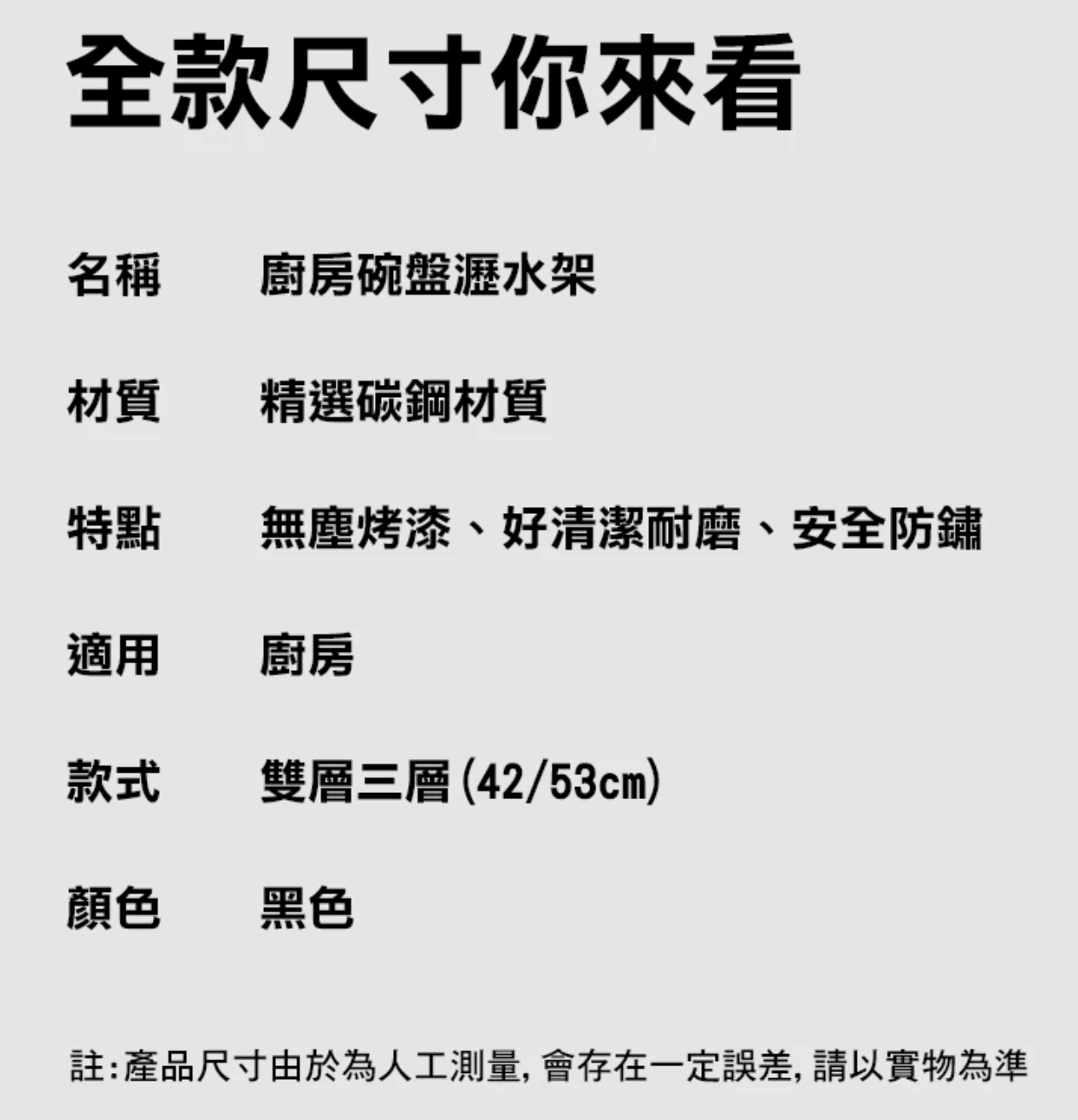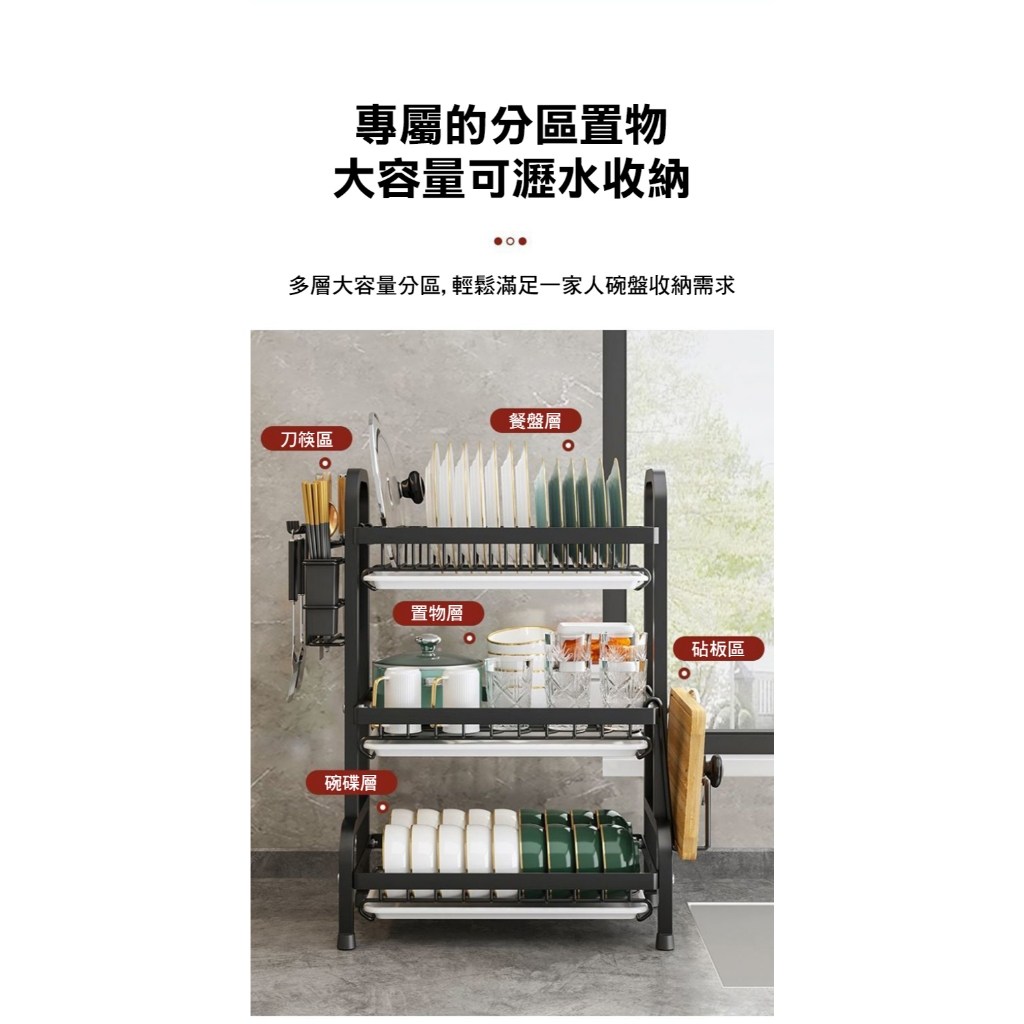 德利生活多功能雙層碗碟收納置物架,為您的廚房帶來整潔有序的體驗。精選碳鋼材質,堅固耐用且安全防鏽,讓您安心使用。雙層大容量設計,輕鬆收納碗、盤、刀、筷、砧板等各式餐具,節省廚房空間。黑色外觀簡約時尚,易於清潔,為您的廚房增添現代感。多層分區設計,滿足一家人的餐具收納需求,讓您的廚房更加整潔有序。