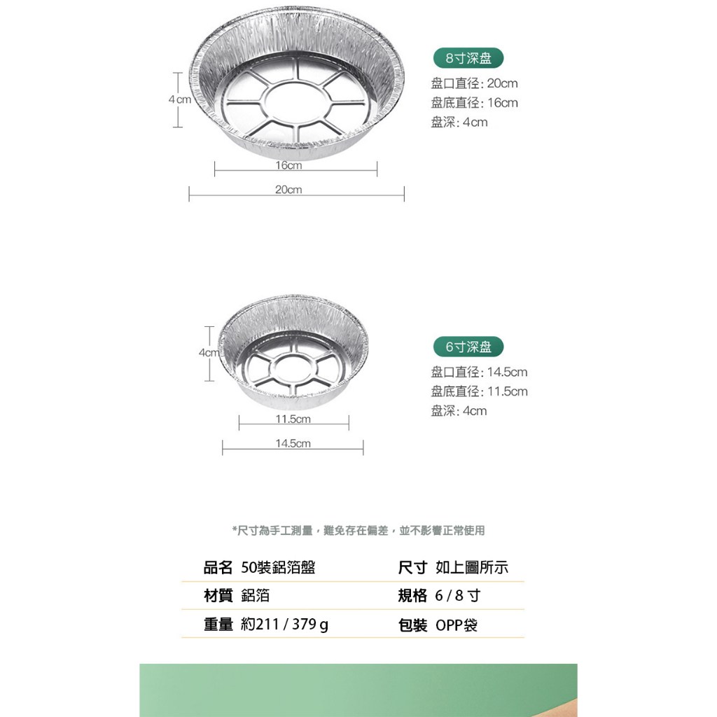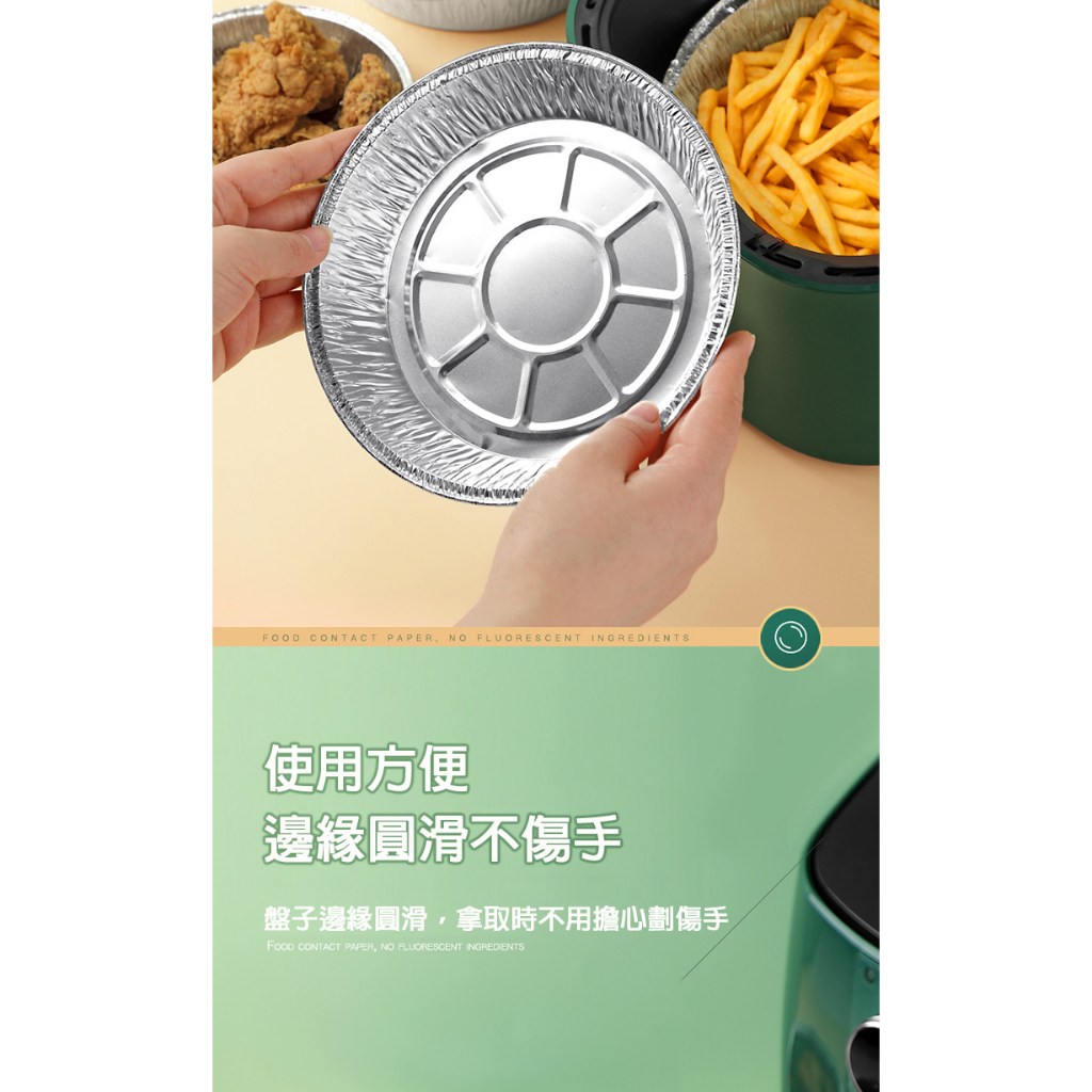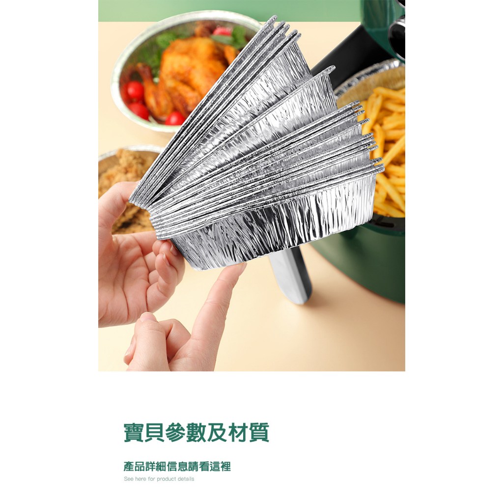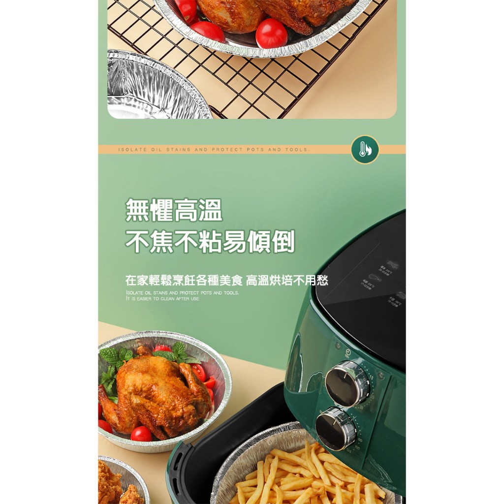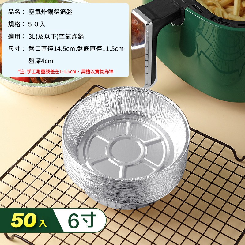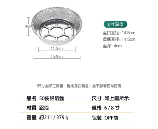 德利生活氣炸鍋烤箱燒烤鋁箔盤,是您廚房烘焙、燒烤的理想選擇。這款6吋鋁箔盤,一組50入,採用可回收材料製成。盤口直徑14.5公分,盤底直徑11.5公分,深度4公分,銀色外觀簡潔大方。適用於氣炸鍋、烤箱等,方便製作各種美食,省時省力,讓您輕鬆享受烹飪樂趣。一次性使用,免去清洗煩惱,是現代家庭的必備廚房用品。