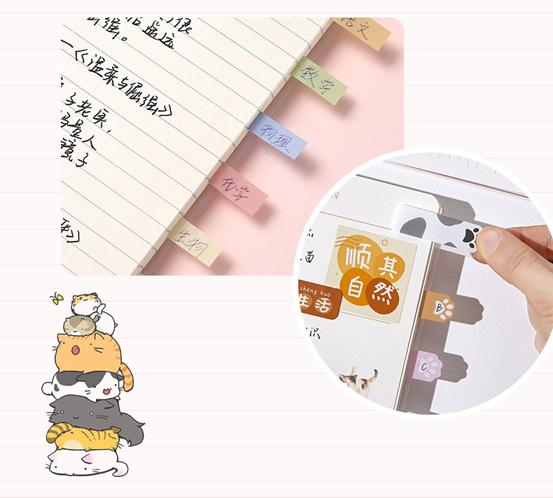 - 五款不同花色貓咪圖案,輕鬆分類標記,讓查找資料更快速。
