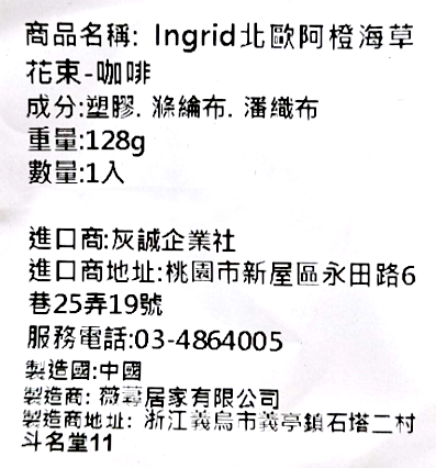 快豹 Ingrid 北歐阿橙海草花束, 咖啡色