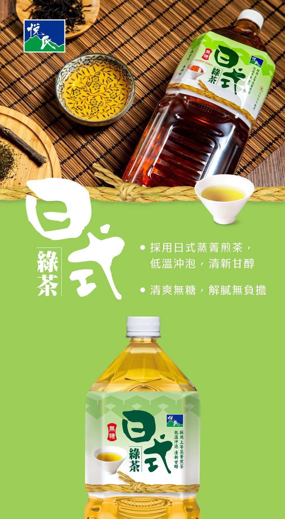 - 悅氏日式無糖綠茶,口感清爽解渴,隨時享受無負擔的清新好滋味。