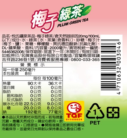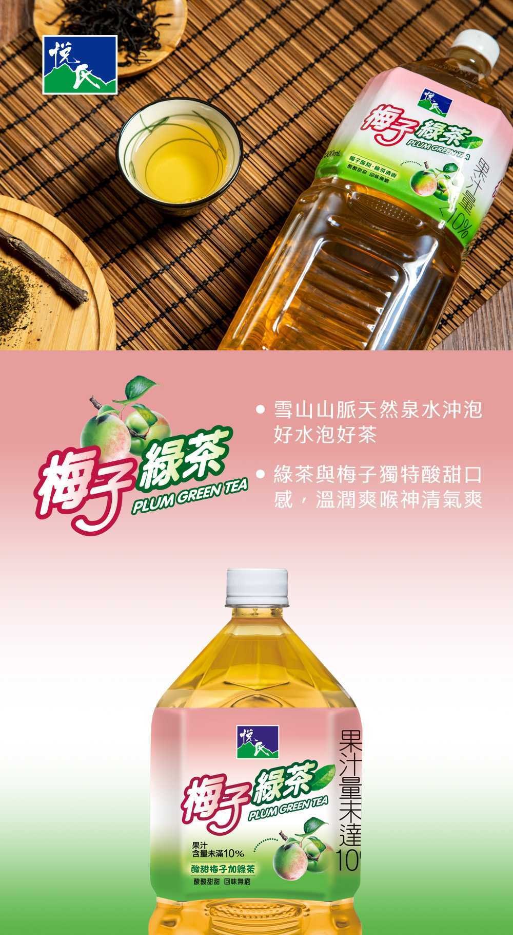 - - 悅氏梅子綠茶,酸甜交織的清爽口感,讓您隨時享受清新好滋味。