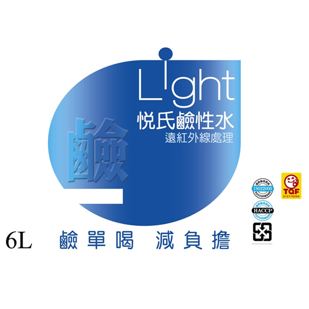 悅氏Light鹼性水,來自台灣。這款鹼性水經過遠紅外線處理,口感清冽,維持身體的健康平衡。每箱包含兩桶6公升裝,無糖配方,適合全家大小日常飲用,隨時補充水分,保持活力。悅氏Light鹼性水不僅是解渴的健康飲品,更是您追求健康生活方式的理想之選。