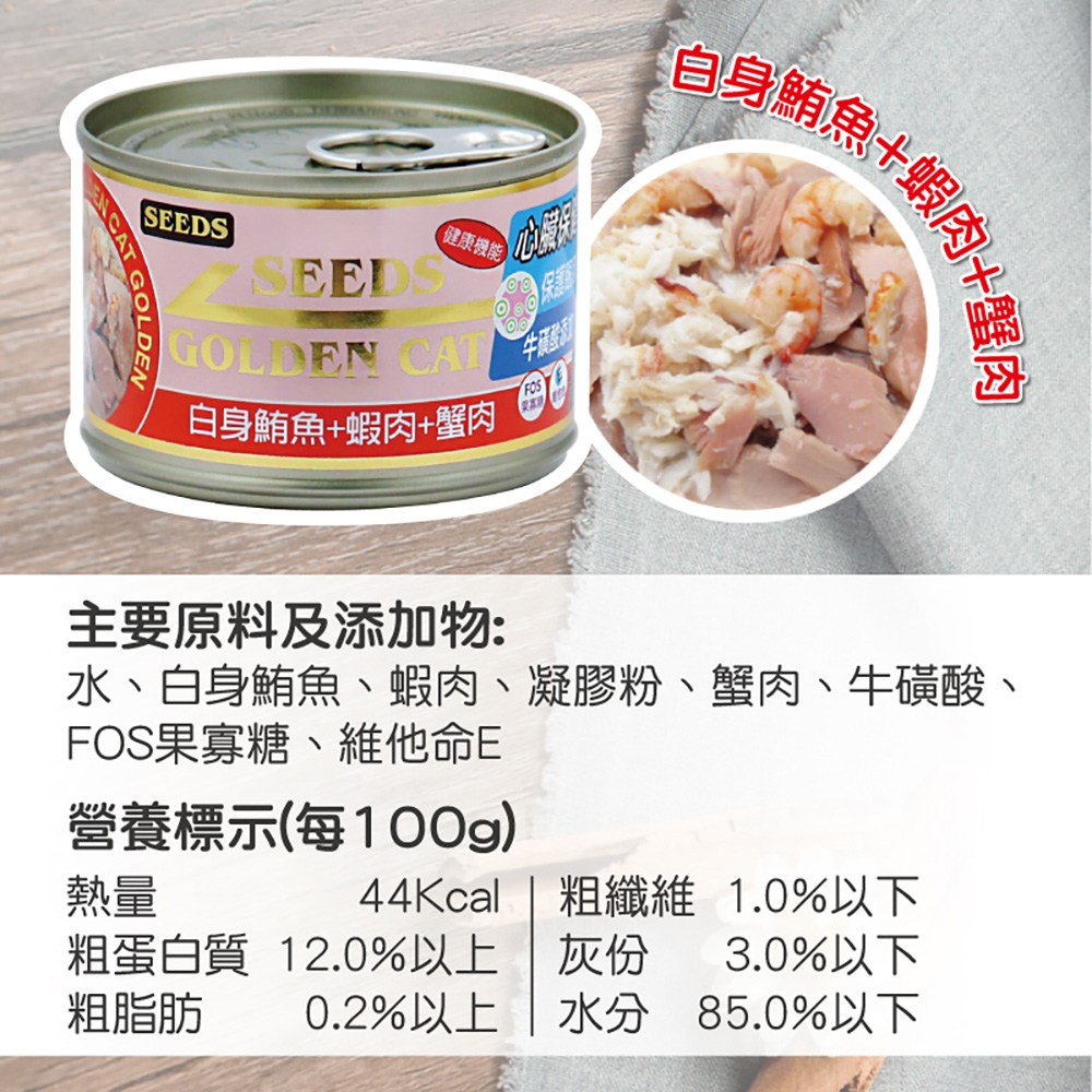 惜時GOLDEN CAT健康機能特級金貓大罐,是一款專為貓咪設計的營養副食罐頭。本產品嚴選鮪魚、蝦肉與蟹肉,提供豐富的蛋白質與多種營養素,有助於提升貓咪的健康機能。170g大罐裝設計,適合多貓家庭或需要長期餵食的貓咪。此外,本產品特別添加牛磺酸,有益於貓咪的心臟健康與視力保健。讓您的愛貓在享受美味的同時,也能獲得全方位的營養呵護。