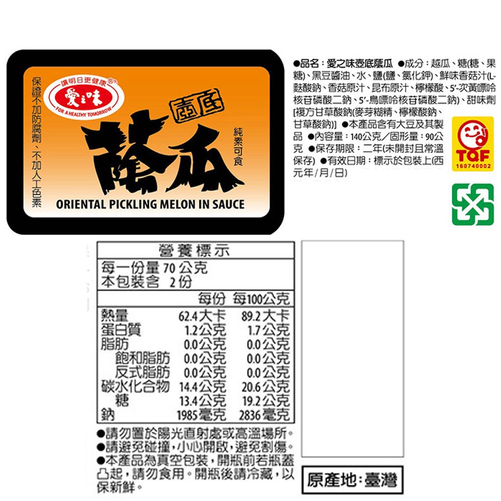 - 愛之味壺底蔭瓜,鹹甜適中,開胃下飯,無論是搭配米飯、麵食或粥品,都能增添風味,讓您食慾大開,享受美食