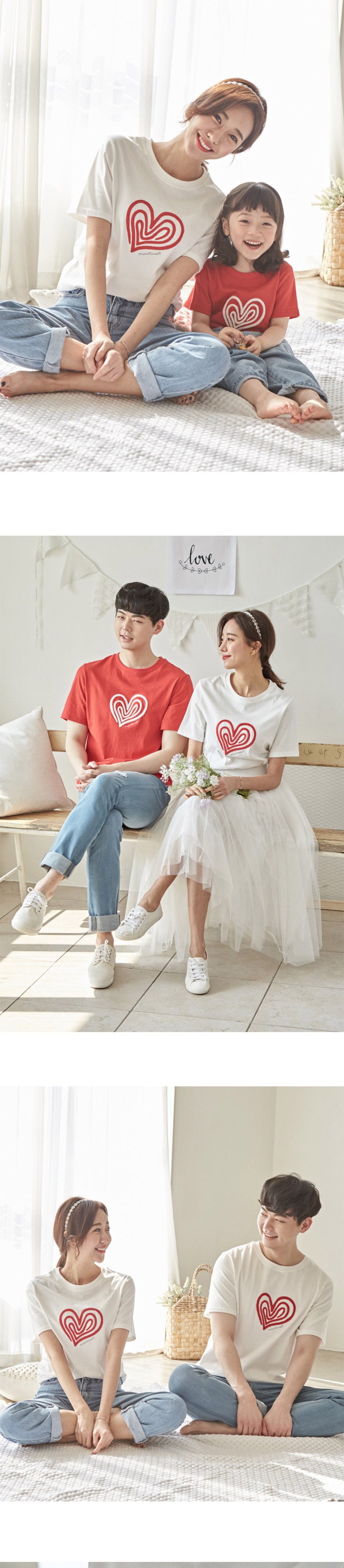 - 愛心圖案設計簡約時尚,輕鬆搭配牛仔褲或裙子,展現家庭溫馨和諧的氛圍。