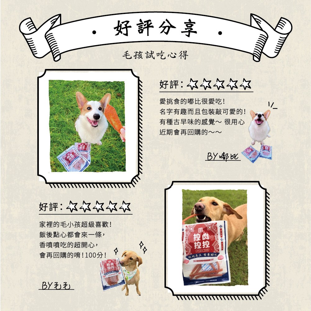 - 手工製作肉乾,口感豐富有嚼勁,讓狗狗享受美味的零食體驗。