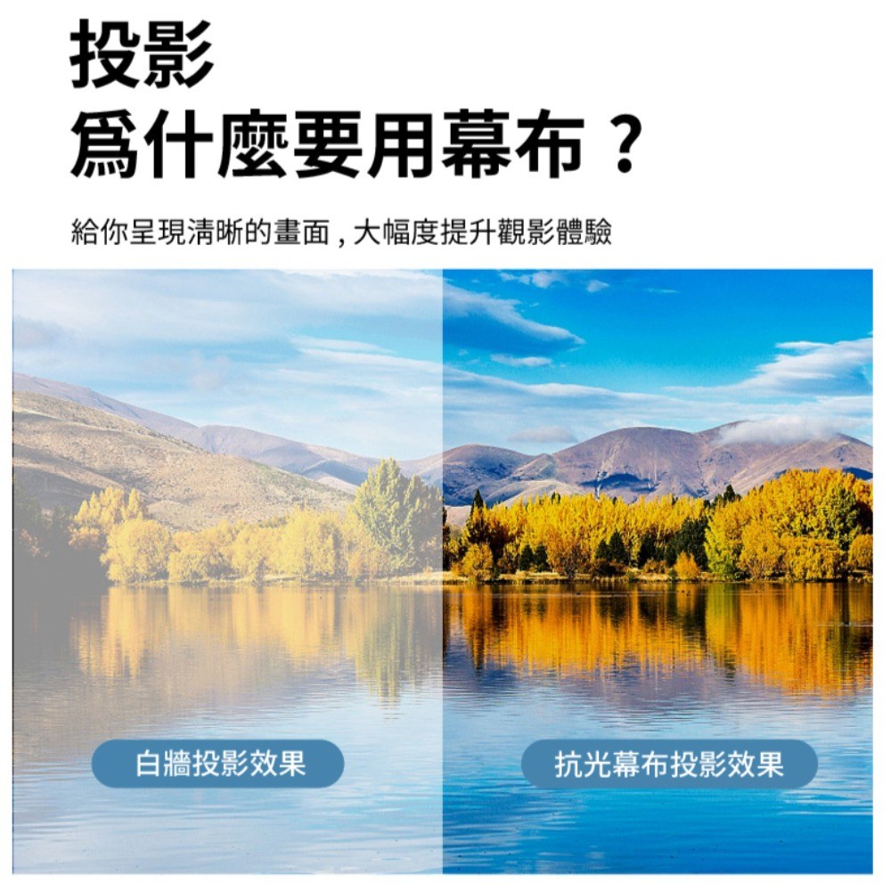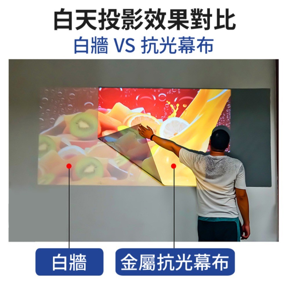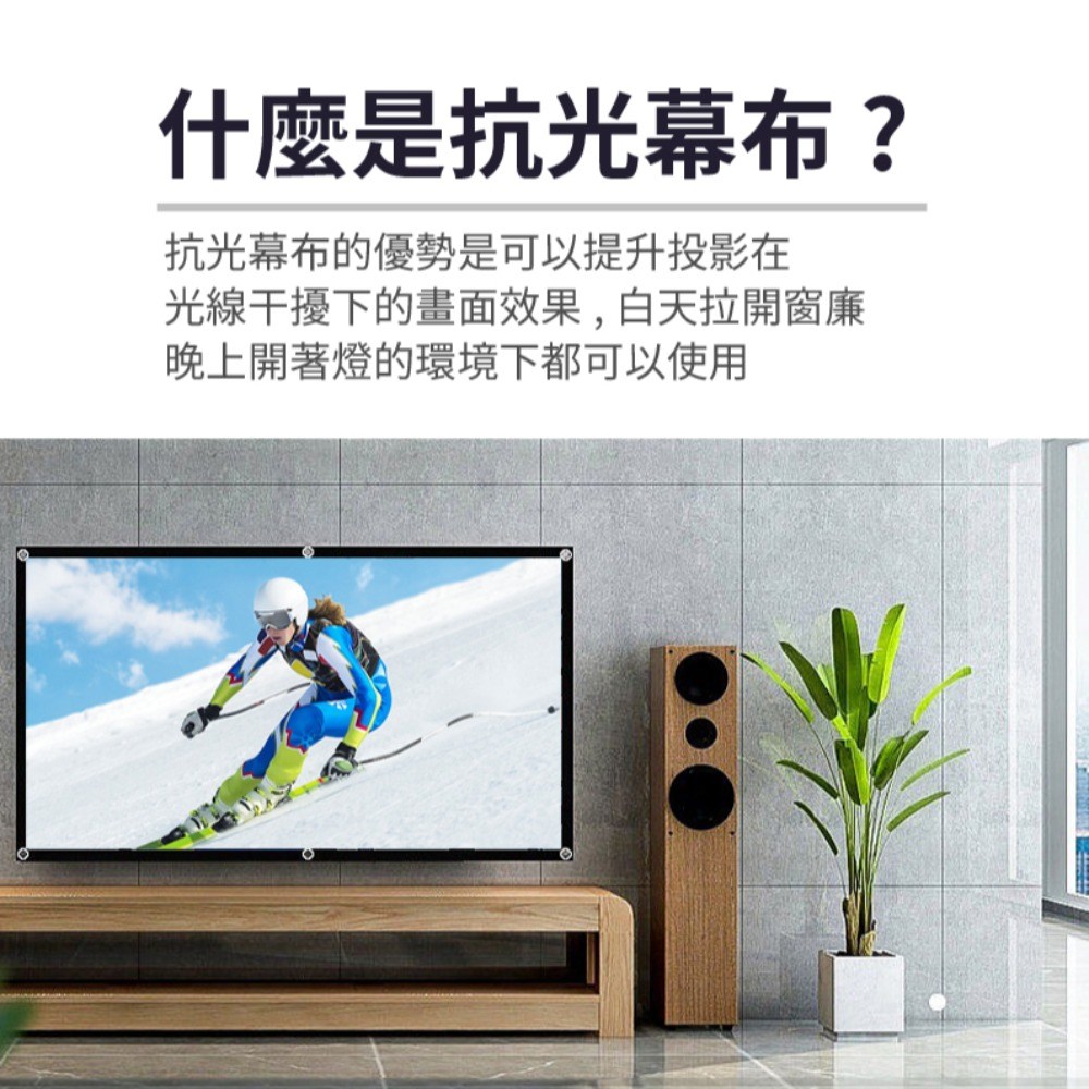 收納部屋16:9黑邊掛勾抗光投影布幕,採用優質聚酯纖維與螢光塗層,呈現清晰銳利的畫面,讓您在家也能享受劇院般的視覺體驗。抗光設計有效阻擋環境光干擾,即使在明亮的環境下也能保持色彩鮮明,告別模糊不清的畫面。100吋大尺寸搭配16:9黃金比例,提供寬廣的觀影視野,無論是觀看電影、玩遊戲或簡報,都能帶來身歷其境的感受。掛勾式設計安裝簡便,輕鬆打造專屬的家庭影院。現在就將電影院搬回家,與家人朋友一同分享感動。