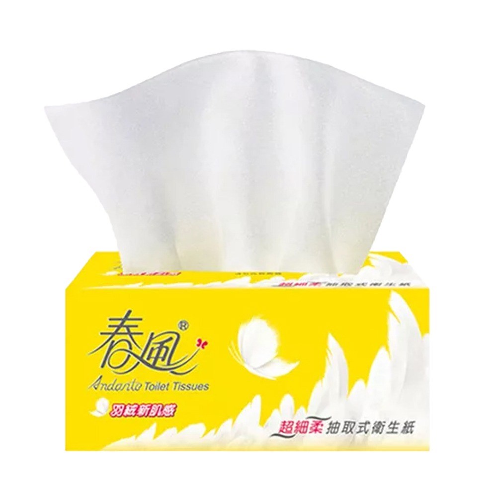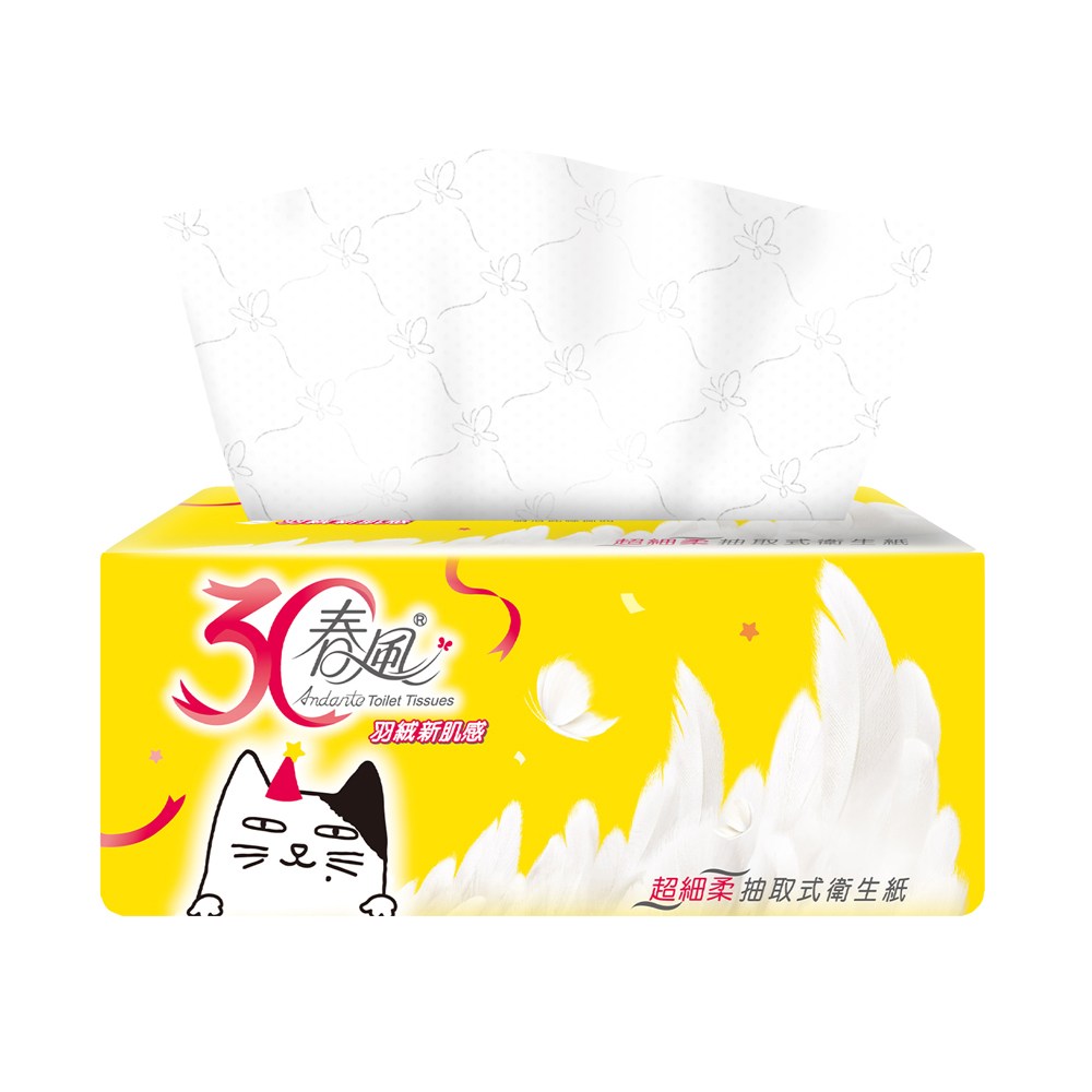 - 雙層超細柔韌抽取衛生紙,給您如羽絨般的輕柔觸感,呵護您的肌膚。