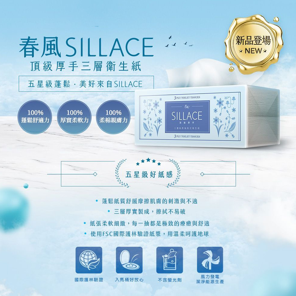 - 三層絲柔觸感,給您如雲朵般的輕柔呵護,使用時倍感舒適。