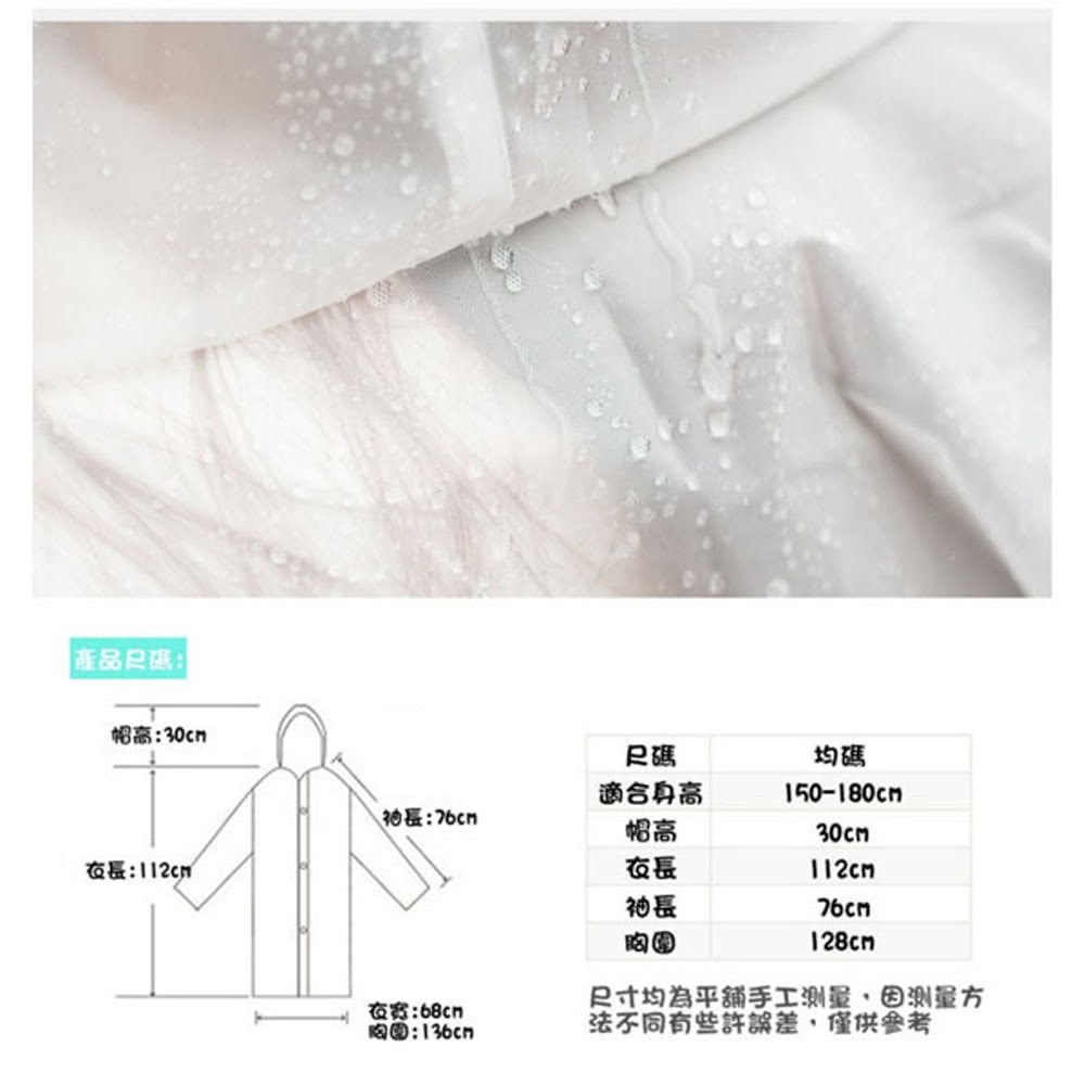 這款時尚男女通用加厚EVA雨衣,尺寸為145 x 70公分,重量僅140克,輕巧方便攜帶。採用優質EVA材質,具有良好的防水性能和耐用性,讓您在雨天也能保持乾爽舒適。簡約的白色設計,時尚百搭,適合各種場合穿著。加厚材質提供更佳的保暖效果,讓您在寒冷天氣也能感到溫暖。無論是日常通勤、戶外活動還是旅行,這款雨衣都是您的理想選擇,讓您輕鬆應對各種天氣狀況。