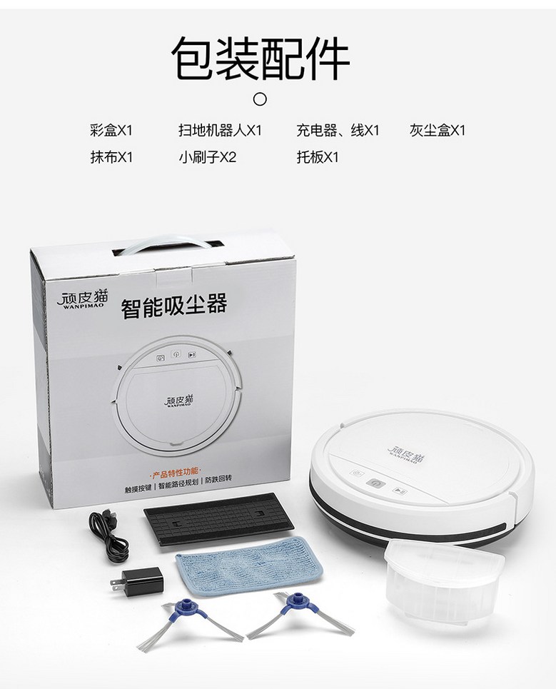 智能掃地機器人,無線遙控,自動導航,低噪音運行,輕鬆清潔, 白, 白色美規