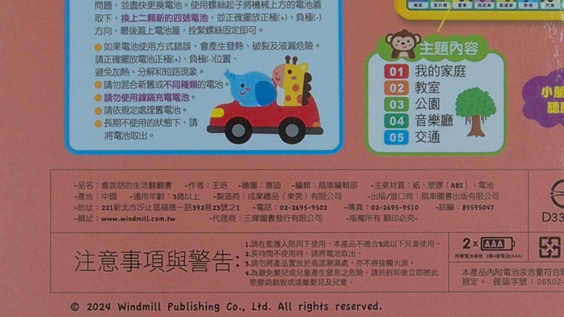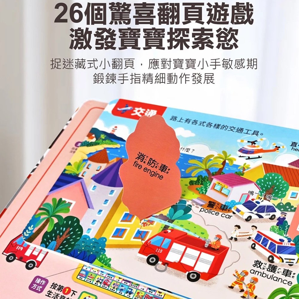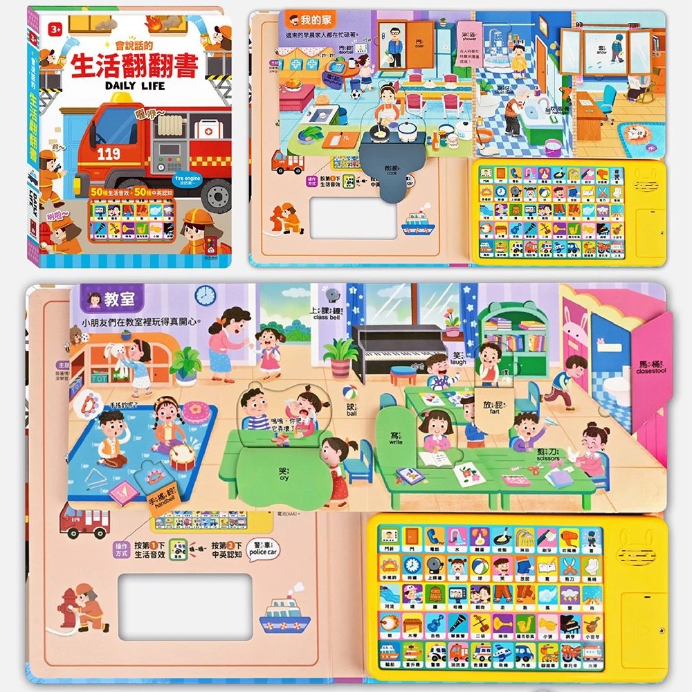 《會說話的生活翻翻書》是一本專為3歲以上兒童設計的互動式認知圖書,以生動有趣的翻頁設計,激發孩子們的探索慾望。本書收錄了50種生活音效和50種中英雙語認知,讓孩子在玩樂中學習,輕鬆掌握日常詞彙。精美的插圖和高品質的喇叭,提供清晰純正的發音,有助於促進寶寶的聽覺發展。翻翻書中涵蓋了家庭、教室、公園、音樂廳和交通等多個主題,讓孩子們在不同的場景中學習生活知識,培養認知能力。風車圖書出版社出品,品質保證,是孩子們學習生活知識和語言的理想選擇。