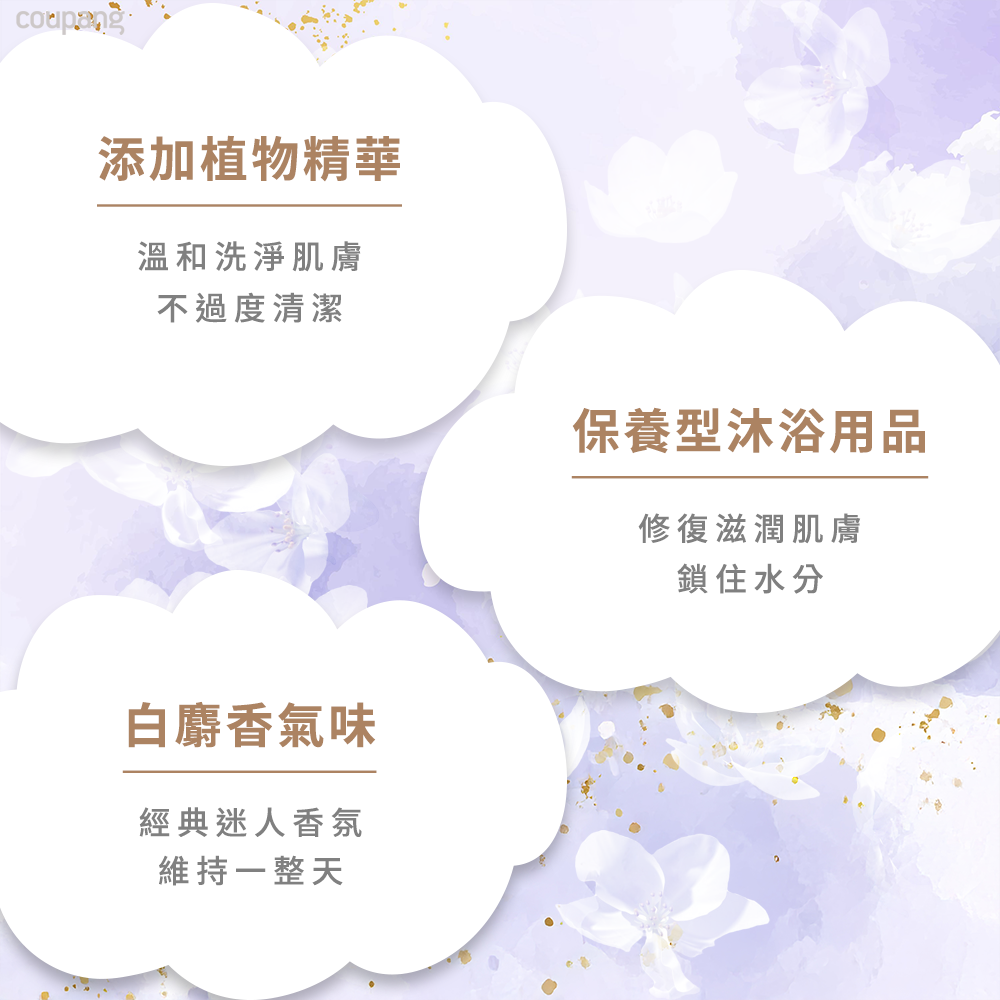 - 白麝香沐浴乳,散發經典迷人香氣,沐浴後全身留下持久淡雅香氛。