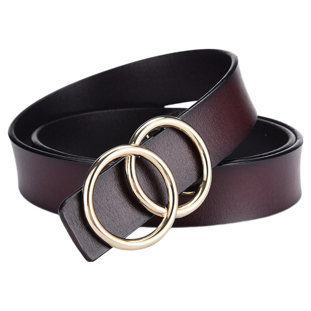 這款『本革職人』真皮雙環圈造型釘扣式皮帶,採用優質真皮製作,觸感細膩,經久耐用。獨特的雙環圈設計,搭配釘扣元素,展現個性時尚風格。咖啡色調經典百搭,輕鬆駕馭各種休閒造型。105cm的長度適合多數女性,無論搭配牛仔褲或裙裝,都能展現您的獨特品味。為您的日常穿搭增添亮點,展現自信魅力。