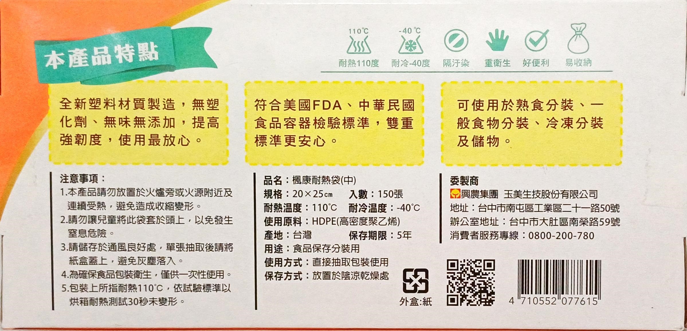 - 楓康耐熱袋讓您輕鬆分裝各式食物,保持食材新鮮,方便又衛生。