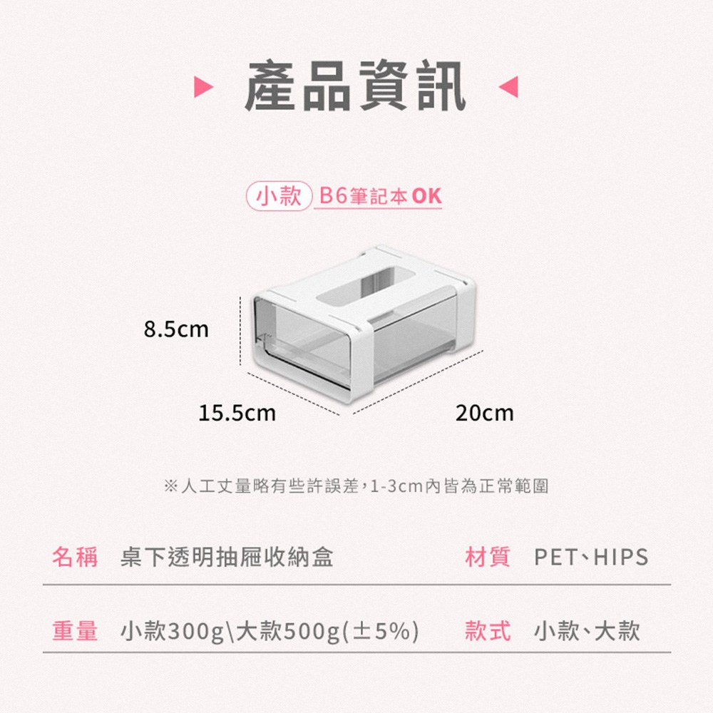 - 小巧B6尺寸設計,適合收納文具、小物等,充分利用桌下空間,讓桌面不再雜亂無章。