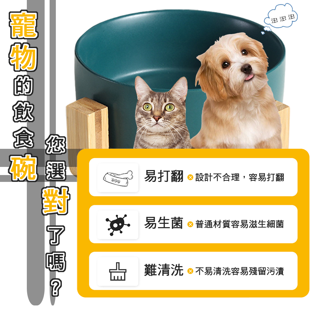 - 木架底座穩固防滑,不易被打翻,讓寵物安心進食,保持環境清潔。