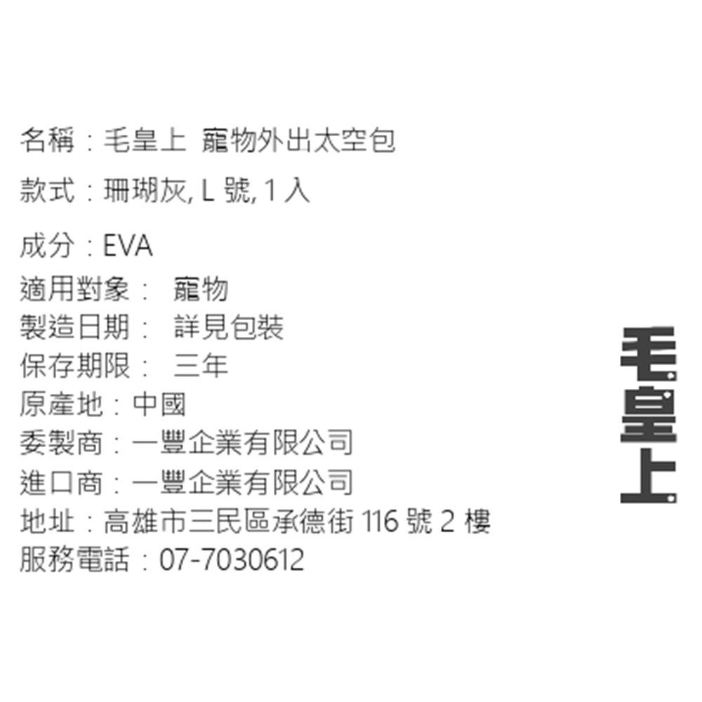毛皇上寵物外出太空包採用EVA防水耐磨布料製成,堅固耐用且易於清潔。規則透氣孔設計確保空氣流通,讓寵物在旅途中也能感到舒適。加固肩帶扣設計提供穩固支撐,減輕肩部負擔。雙拉鍊配置方便開啟和關閉,收納後體積小巧,不佔空間。這款太空包適合12公斤以下的寵物,讓您和您的愛寵輕鬆出行。