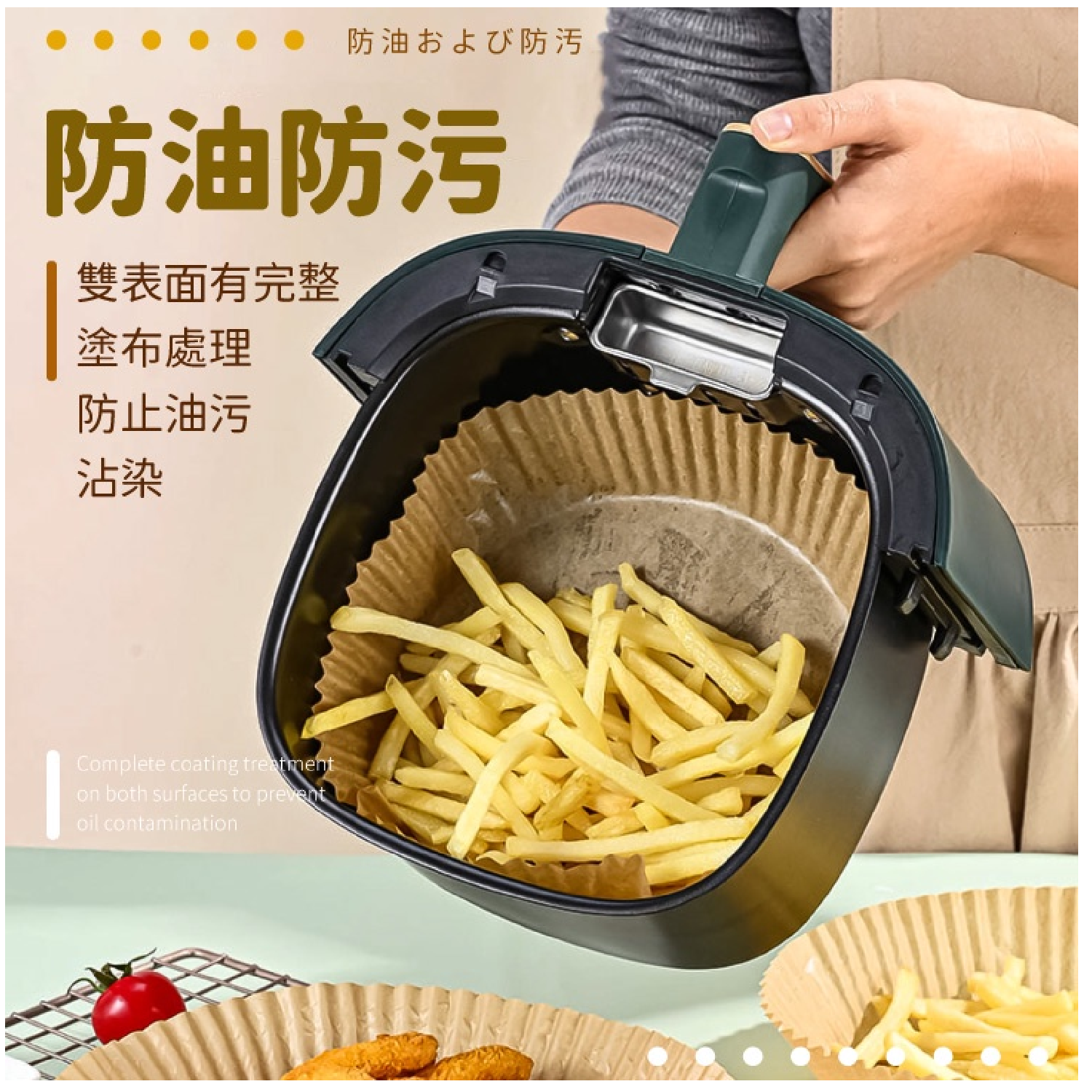 • 氣炸鍋專用烘焙紙,讓您輕鬆享受美食,無需擔心油膩殘留,清潔更省時。
