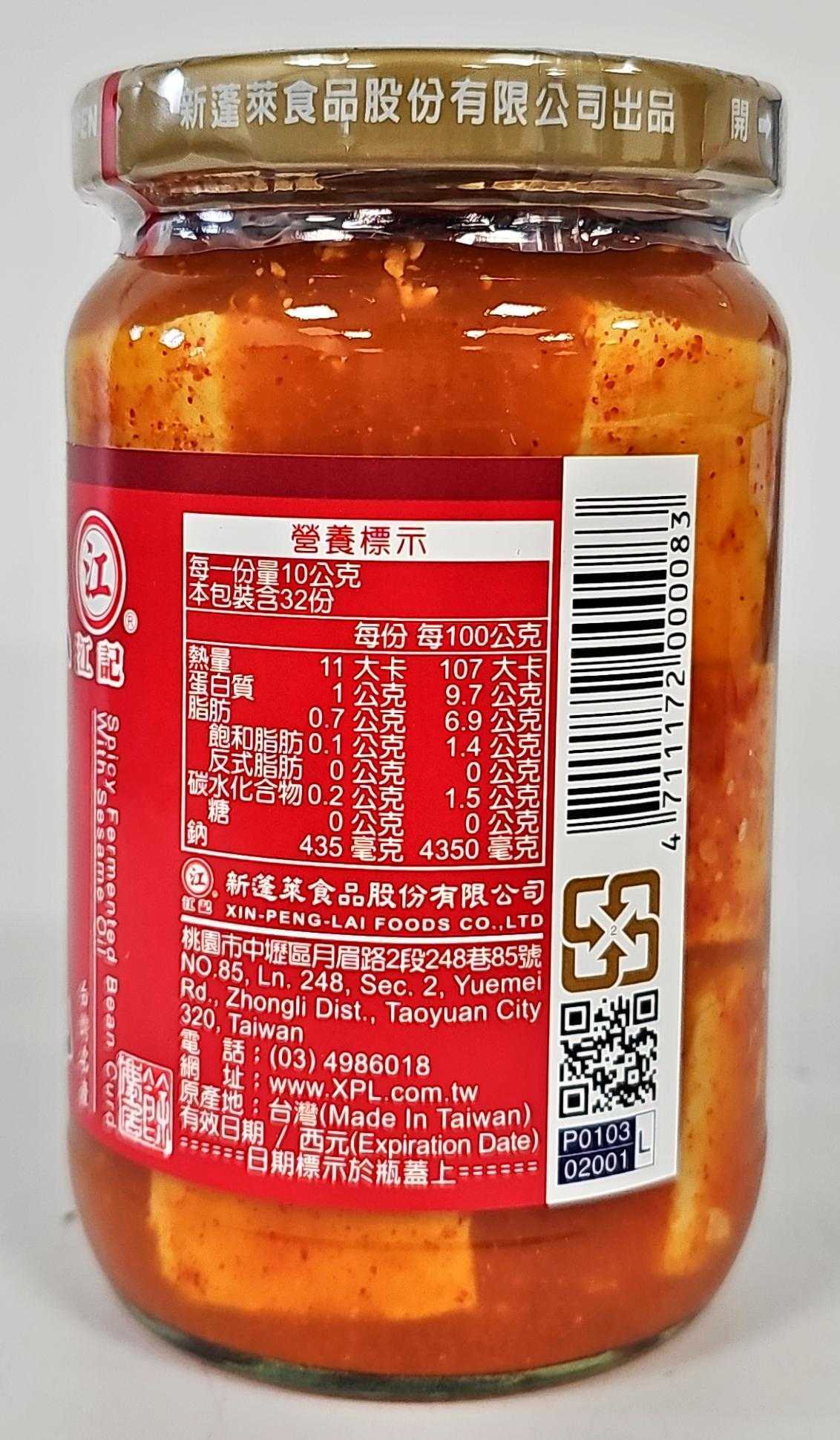 江記麻油辣腐乳,是台灣傳統風味的罐頭美食,每一口都充滿濃郁的麻油香氣和辣椒的刺激,令人食慾大開。這款腐乳採用非基因改造黃豆製成,不含防腐劑、人工色素和甜味劑,讓您吃得安心又健康。無論是搭配稀飯、饅頭,還是作為佐餐小菜,都能為您的餐桌增添風味。每罐320g的份量,適合家庭分享,開封後請冷藏保存,確保最佳風味。