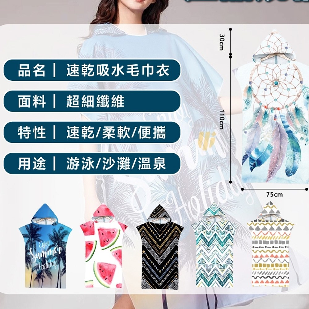 s-sportplus+ 沙灘連帽毛巾衣 速乾吸水 親膚柔軟, 西瓜, 1件, 75cm x 140cm