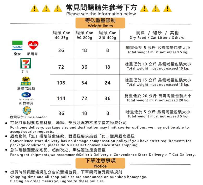 | 物流夥伴 | 依酷澎商城賣家設置而定,同一個賣家店鋪的不同商品之運送合作夥伴亦可能有差異 |