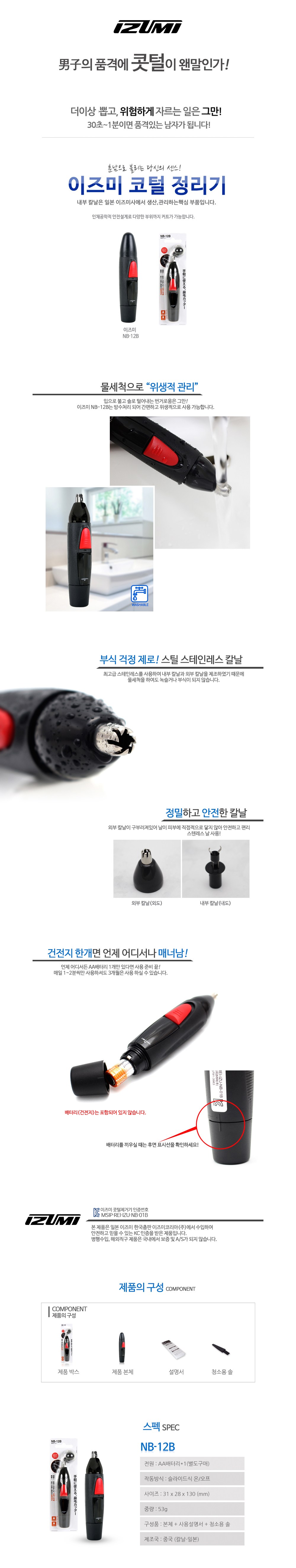 IZUMI鼻毛修剪器NB-12B,是您展現個人品味的必備工具。採用人體工學安全設計,輕鬆修剪鼻毛,告別尷尬。內部刀片由日本IZUMI公司生產。不鏽鋼刀片可水洗,衛生方便,讓您告別清潔煩惱。體積輕巧,電池供電,隨時隨地保持最佳儀容。