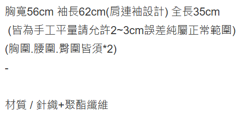 這款法式燈籠袖針織短版罩衫,以其獨特的設計和舒適的材質,為您的穿搭增添一抹亮色。黑色經典百搭,輕鬆駕馭各種風格。針織面料柔軟親膚,帶來舒適的穿著體驗。燈籠袖設計時尚感十足,展現您的個性魅力。短版剪裁拉長身形比例,讓您更加自信迷人。無論是搭配洋裝、T恤或襯衫,都能展現不同的時尚風采。尺寸:胸寬56 cm,袖長62 cm(肩連袖設計),全長35 cm。