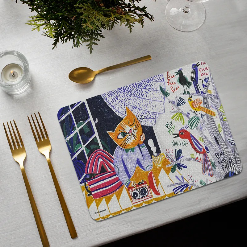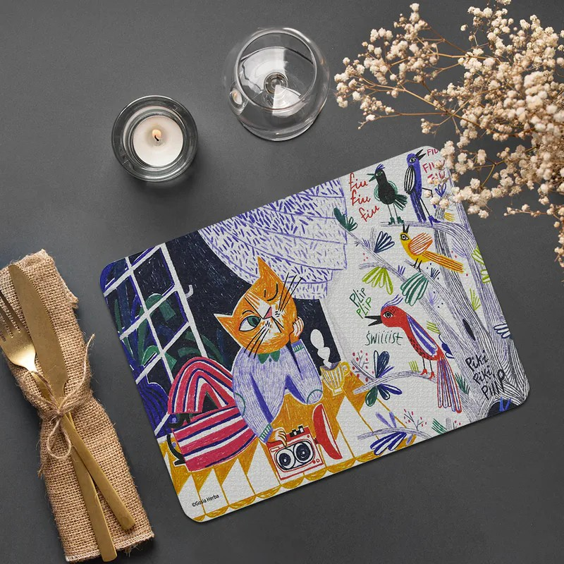 - 可愛貓咪與小鳥圖案,增添用餐樂趣,讓餐桌充滿活力與童趣。