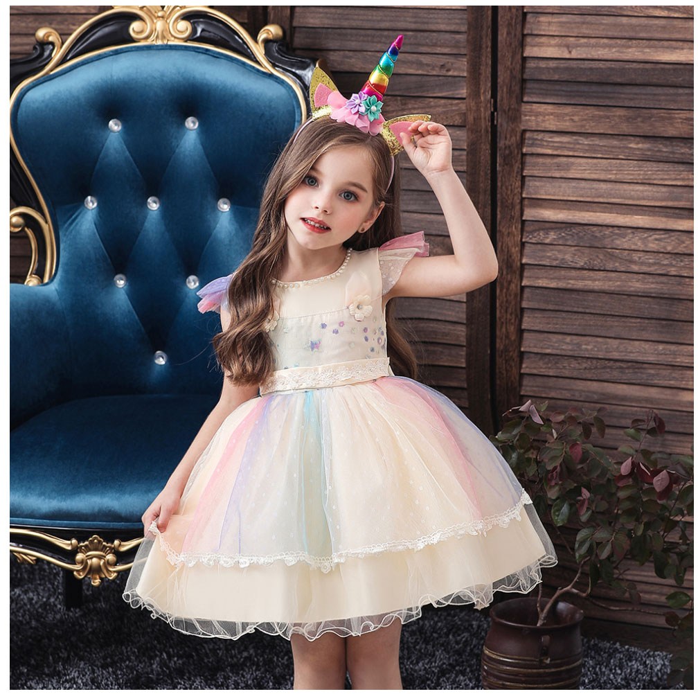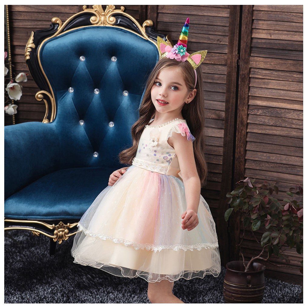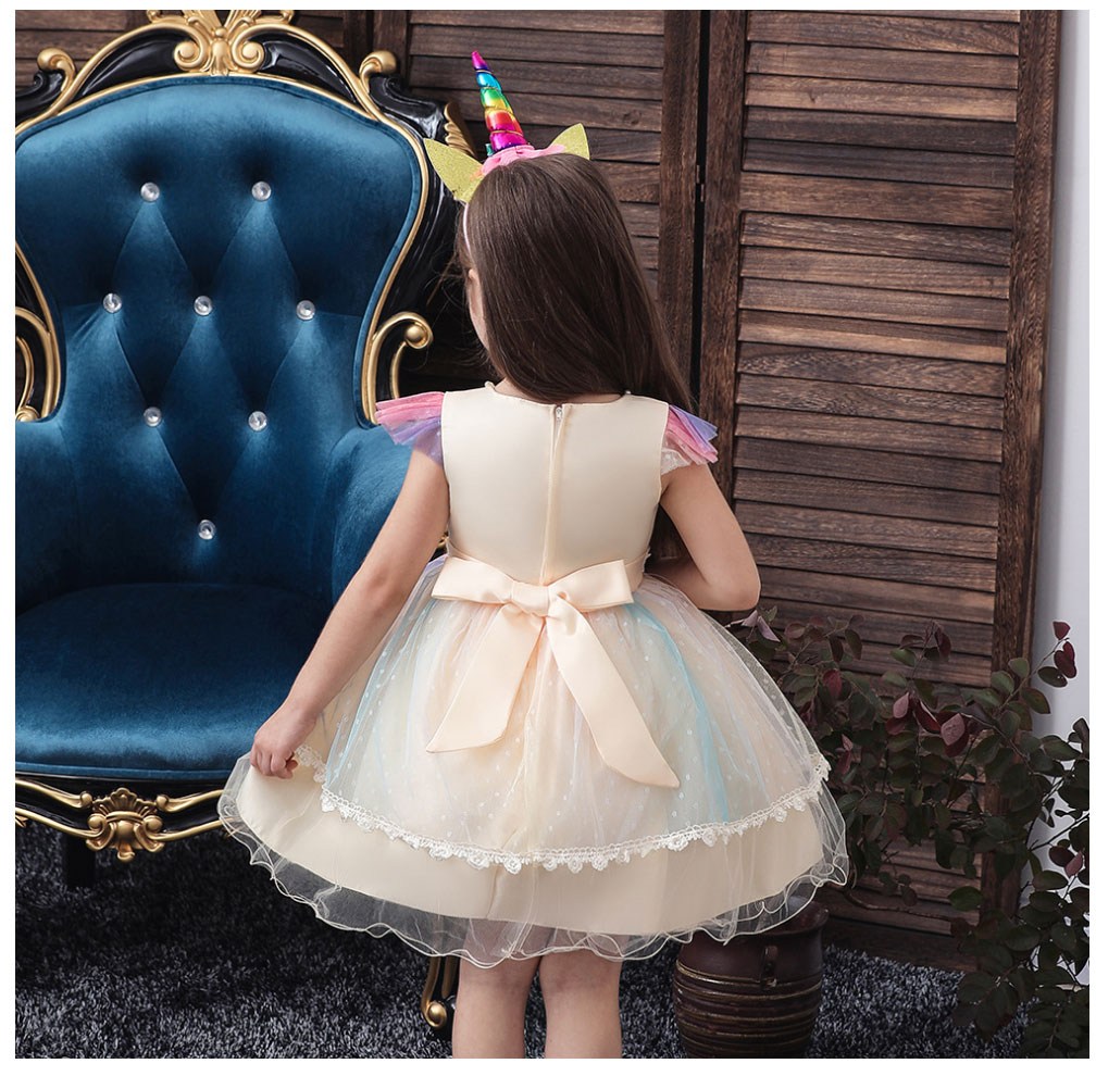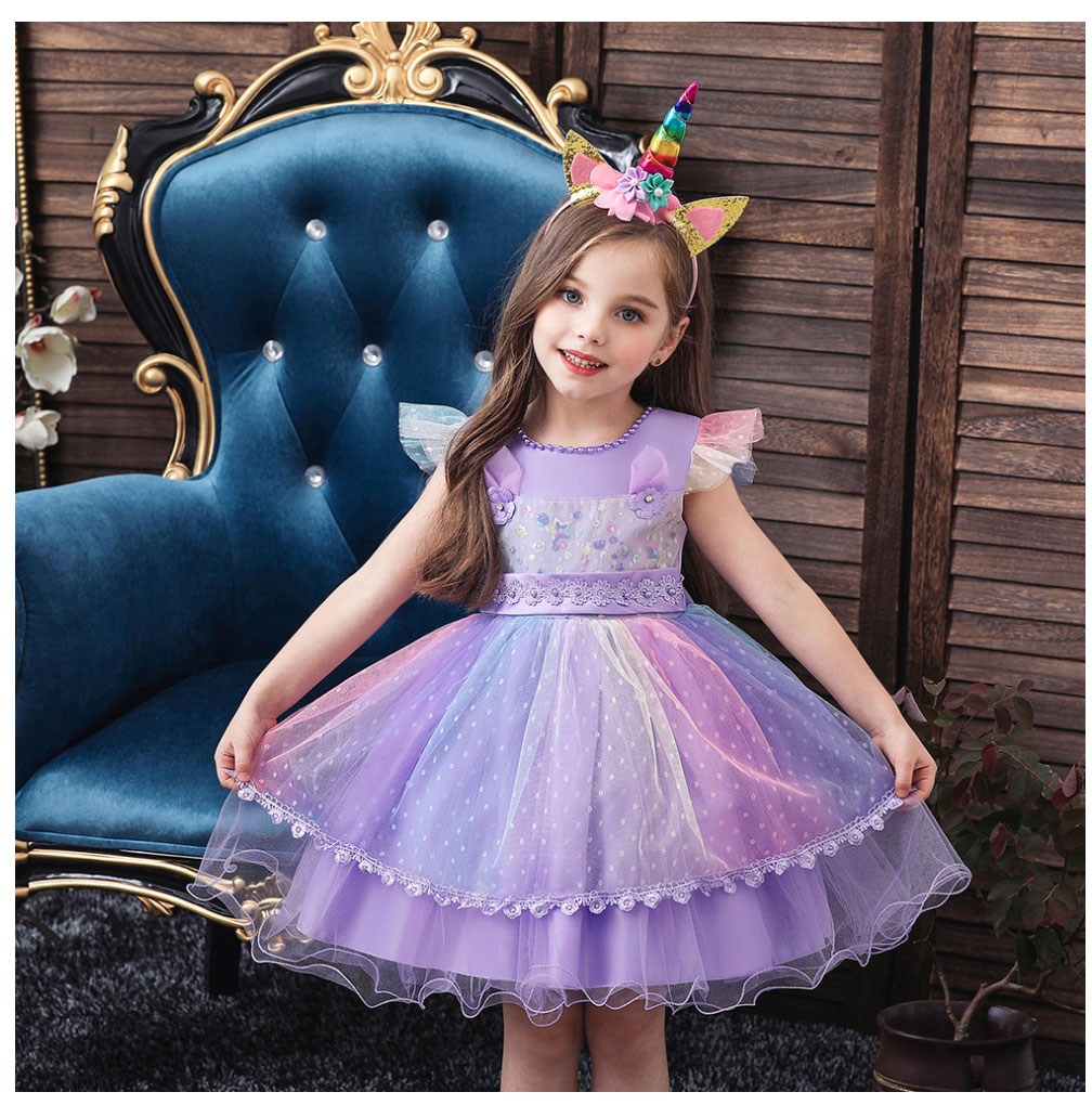 讓您的寶貝穿上這款精緻的彩虹印花禮服,瞬間化身童話世界的小公主!柔軟舒適的面料,搭配夢幻的彩虹印花,猶如彩虹仙子般輕盈靈動。禮服上點綴著閃亮亮片,更添夢幻氣息。搭配可愛的獨角獸髮箍,更顯俏皮可愛。無論是生日派對、節日慶典,還是舞台表演,都能讓您的寶貝成為全場焦點!