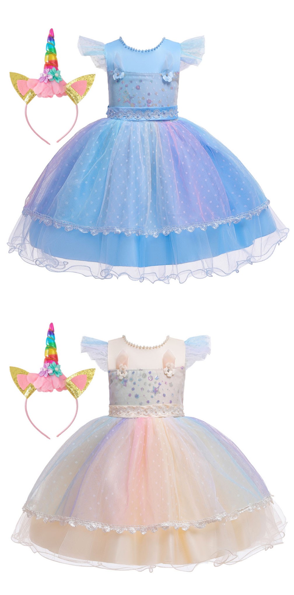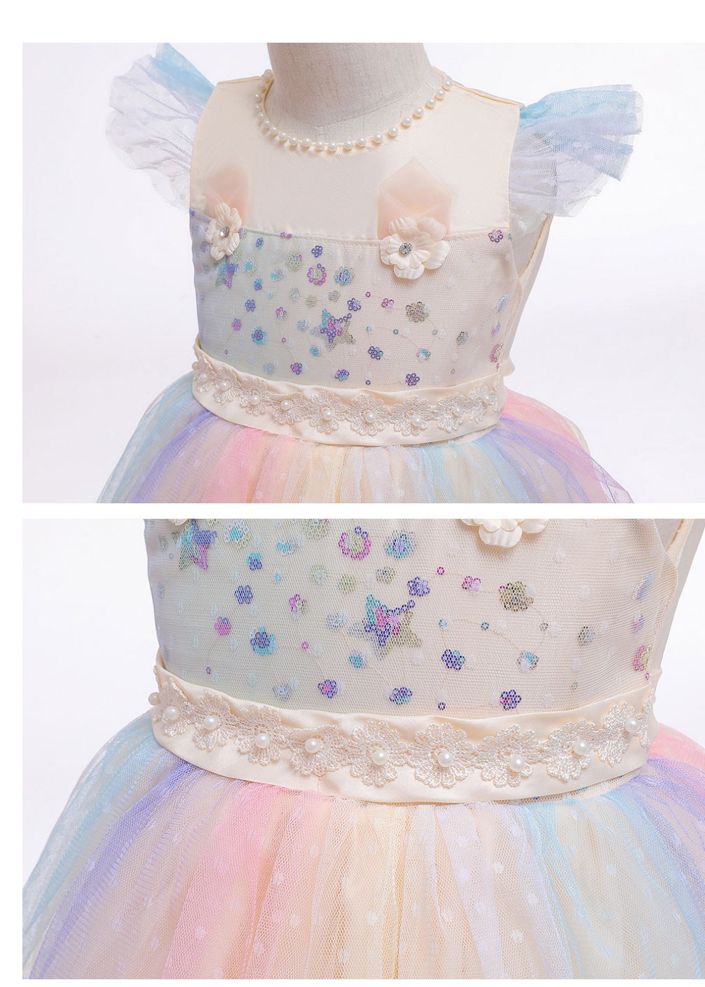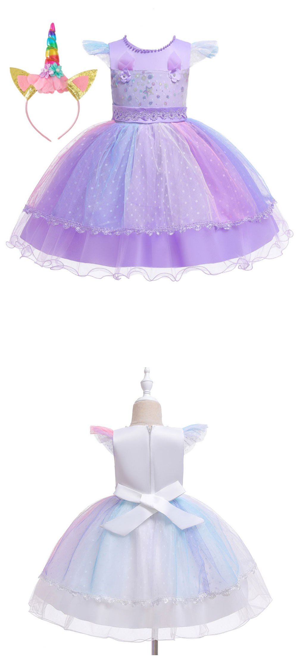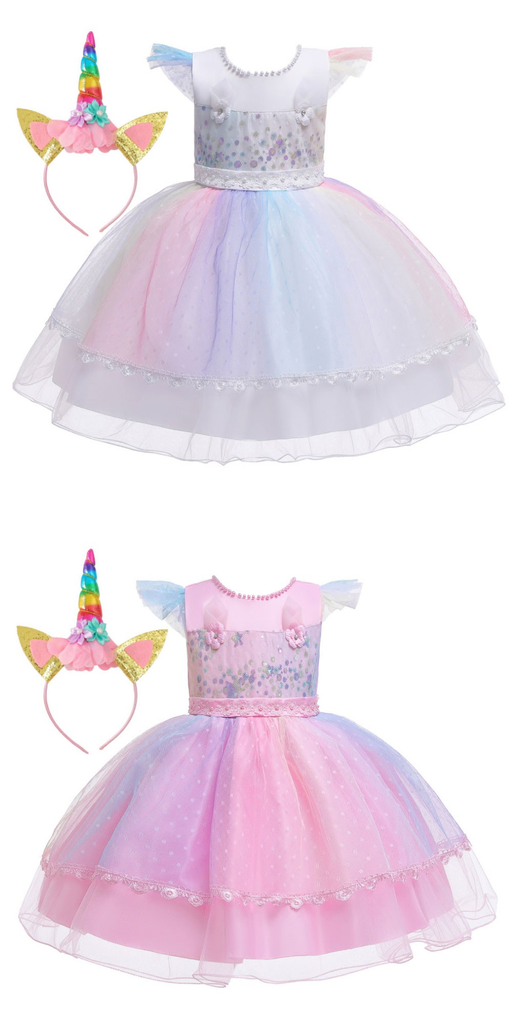 讓您的寶貝穿上這款精緻的彩虹印花禮服,瞬間化身童話世界的小公主!柔軟舒適的面料,搭配夢幻的彩虹印花,猶如彩虹仙子般輕盈靈動。禮服上點綴著閃亮亮片,更添夢幻氣息。搭配可愛的獨角獸髮箍,更顯俏皮可愛。無論是生日派對、節日慶典,還是舞台表演,都能讓您的寶貝成為全場焦點!