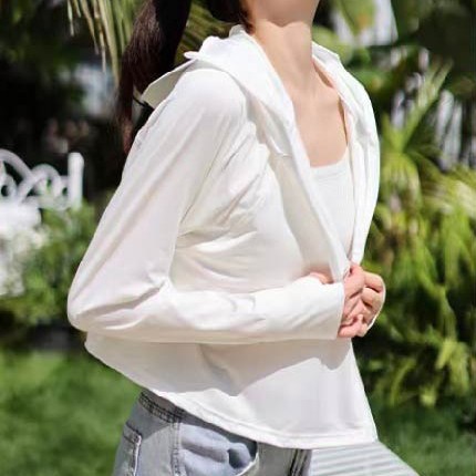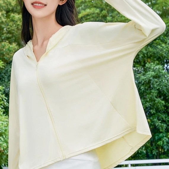 這款白色涼感防曬連帽外套,是您戶外活動的理想選擇。採用冰絲與聚酯纖維混紡材質,觸感涼爽舒適,有效阻擋紫外線,讓您在陽光下也能保持清爽。連帽設計提供額外的防曬保護,袖長55公分,肩寬38公分,胸寬44公分,全長78公分,剪裁合身,方便活動。無論是運動、休閒或日常穿搭,都能展現您的時尚品味,讓您在享受陽光的同時,也能保持美麗與健康。