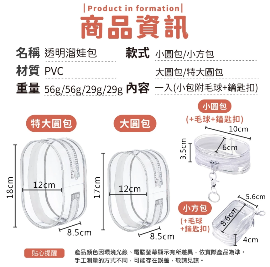 這款透明溜娃包(G678)是時尚媽咪的必備單品。尺寸為17cm x 12cm x 8.5cm的大圓包設計,方便收納寶寶的必需品,讓您隨時保持優雅。透明材質讓您一眼就能找到需要的物品,節省時間,不再手忙腳亂。採用高品質PVC材質,堅固耐用,易於清潔,確保寶寶用品的衛生安全。拉鍊設計安全可靠,讓您安心出行。無論是日常外出還是旅行,這款透明溜娃包都是您的理想選擇。