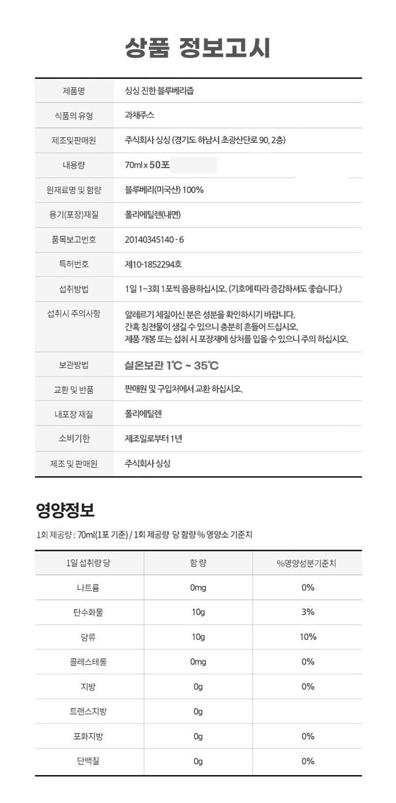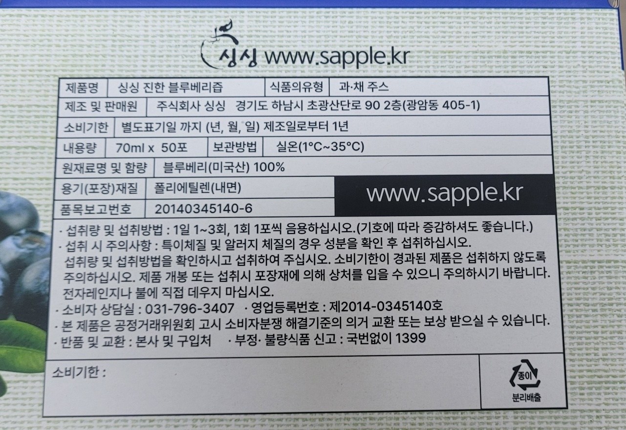 濃郁藍莓汁, 70ml, 50個