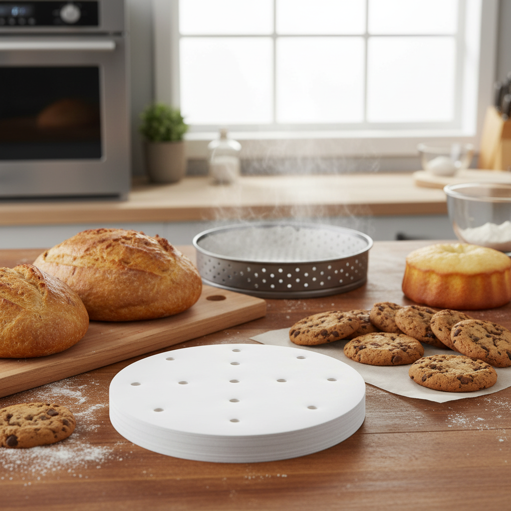 這款22公分有孔烘焙紙是您烘焙的好幫手。圓形設計能完美貼合烤盤,使烘焙更加均勻,讓您的糕點擁有完美的色澤。有孔設計促進熱空氣流通,加速烘烤過程,節省您的寶貴時間。100張的大容量包裝,經濟實惠,滿足您多次烘焙的需求。無論是餅乾、蛋糕還是麵包,這款烘焙紙都能輕鬆應對,讓您享受烘焙的樂趣。