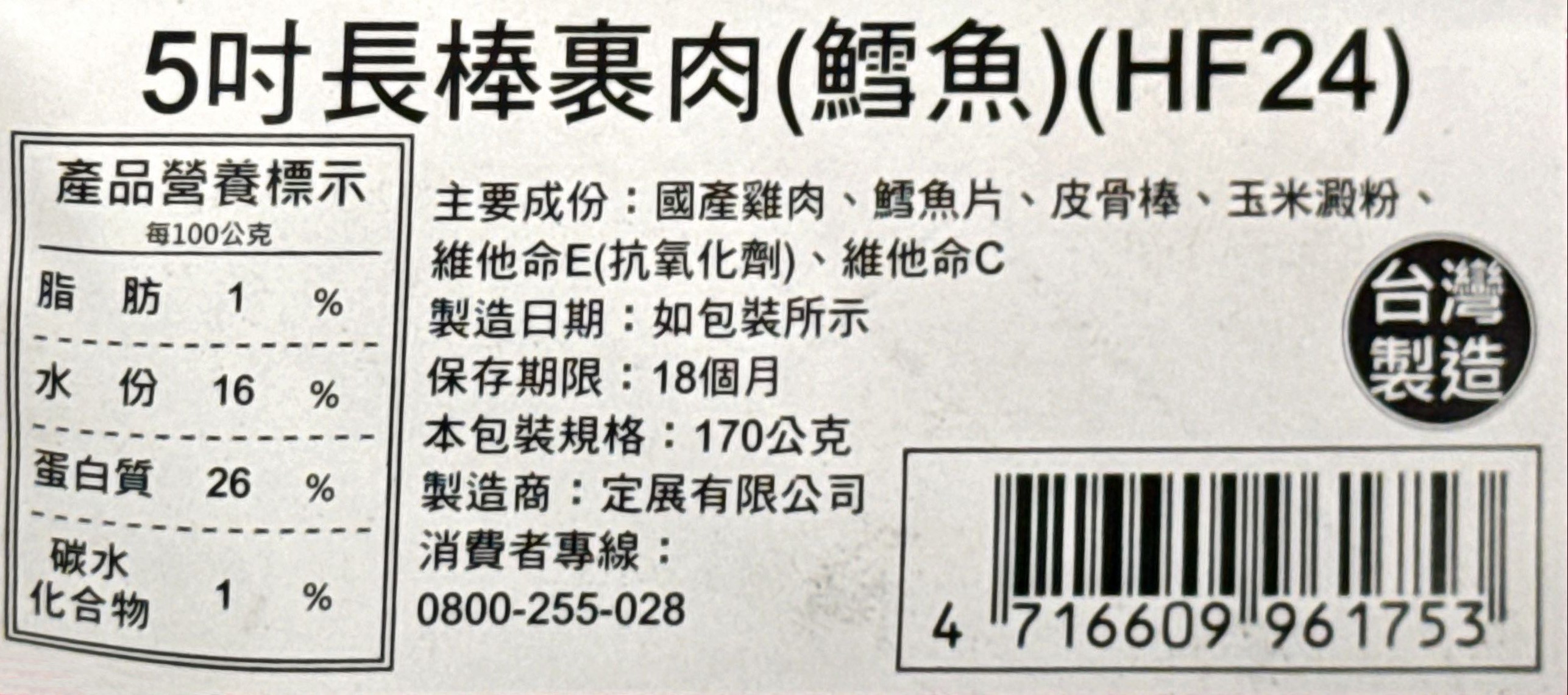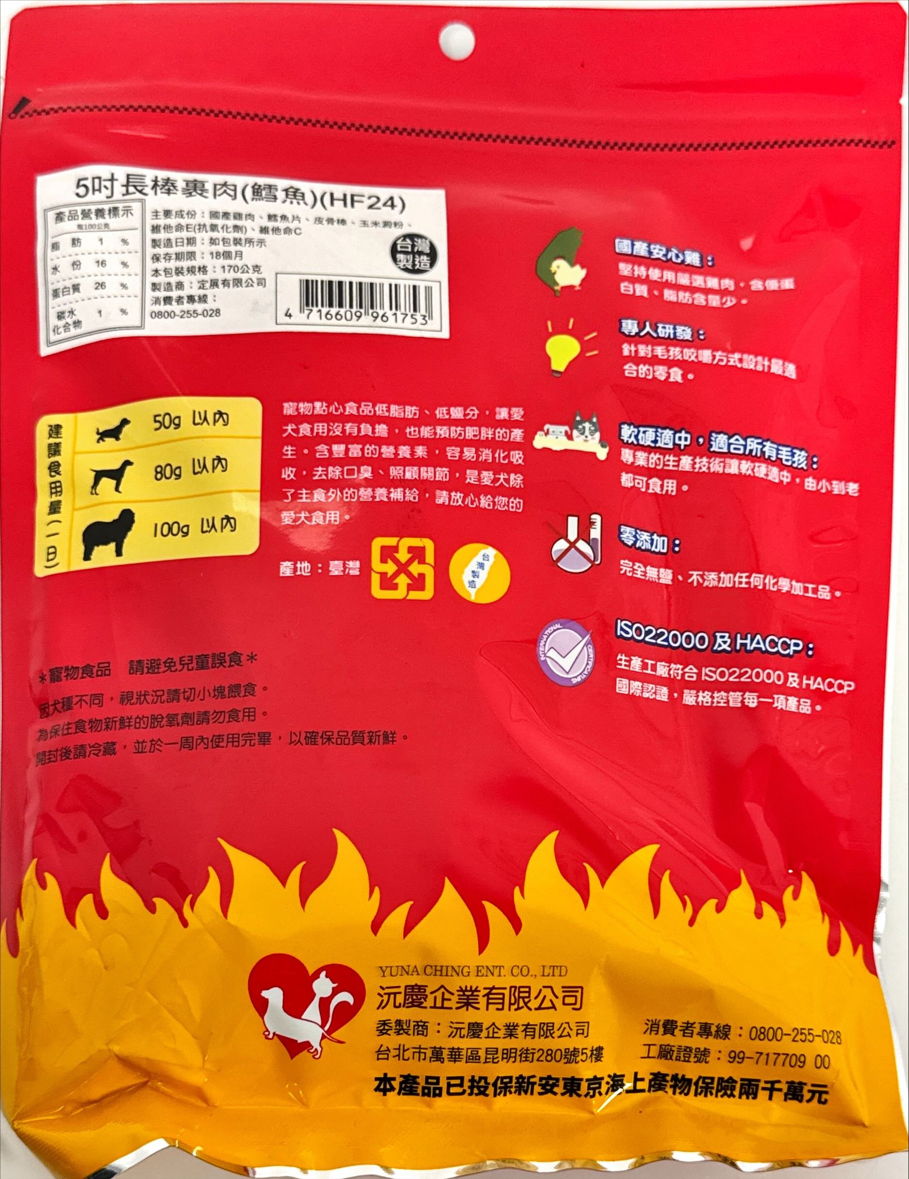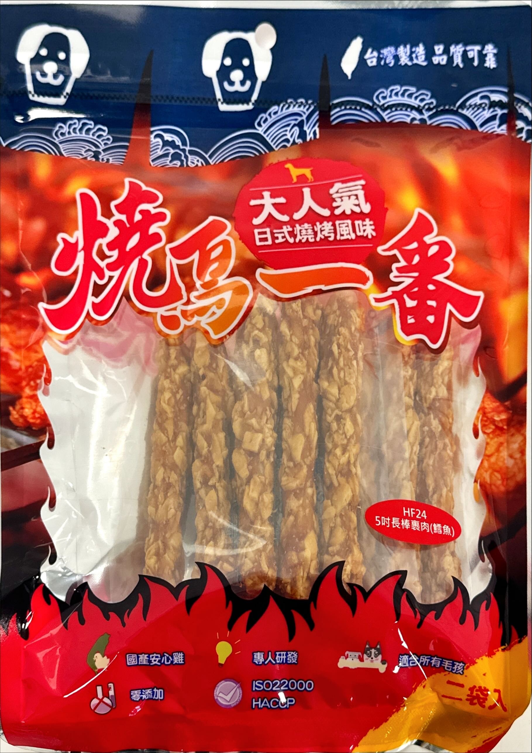 燒鳥一番 HF24 台灣安心雞 低溫烘烤 無添加 100%純手工製作 犬用營養獎勵棒, 5吋長棒裹肉鱈魚, 5吋長棒裹肉(鱈魚), 170g, 1袋